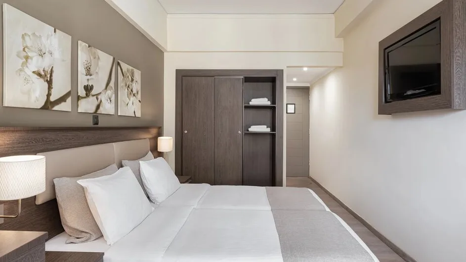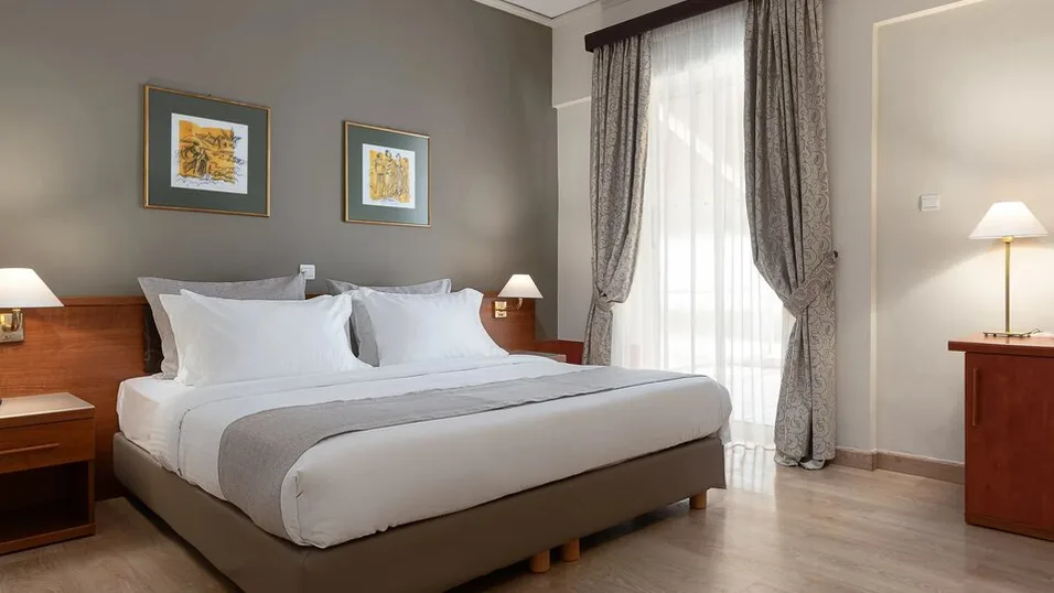 Smeštaj obuhvata ukupno 72 sobe, uređene u modernom stilu, sa pažljivo biranim nameštajem i detaljima inspirisanim antičkom Grčkom. U ponudi su jednokrevetne sobe za solo putnike, dvokrevetne (sa bračnim ili odvojenim ležajevima), kao i trokrevetne sobe sa dodatnim pomoćnim ležajem, pogodne za manje porodice ili prijatelje. Sve sobe su osmišljene za udoban boravak i funkcionalnost tokom razgledanja ili poslovnih obaveza.
