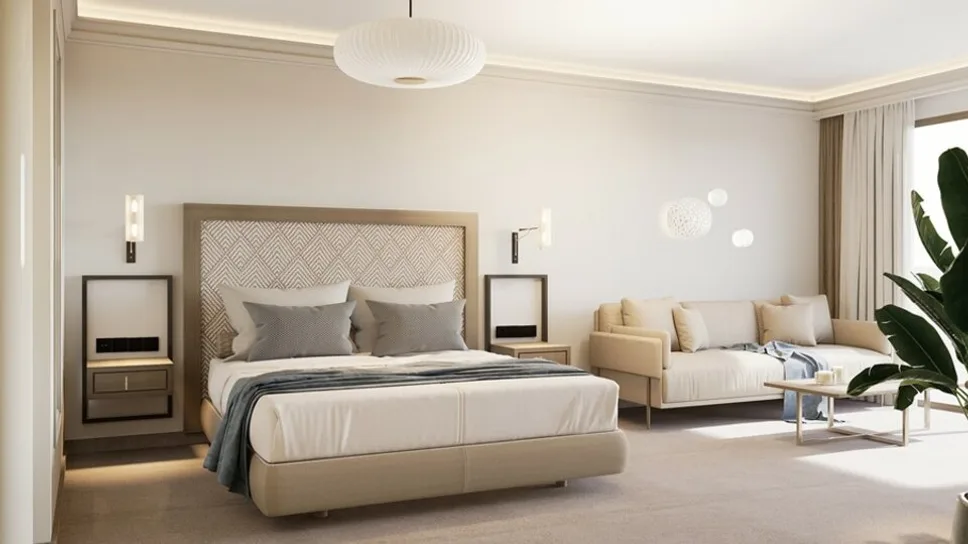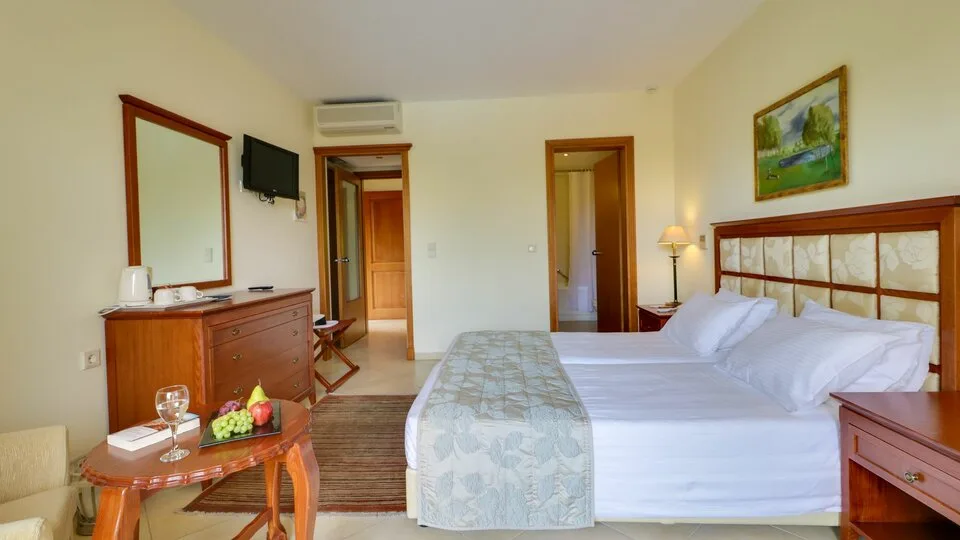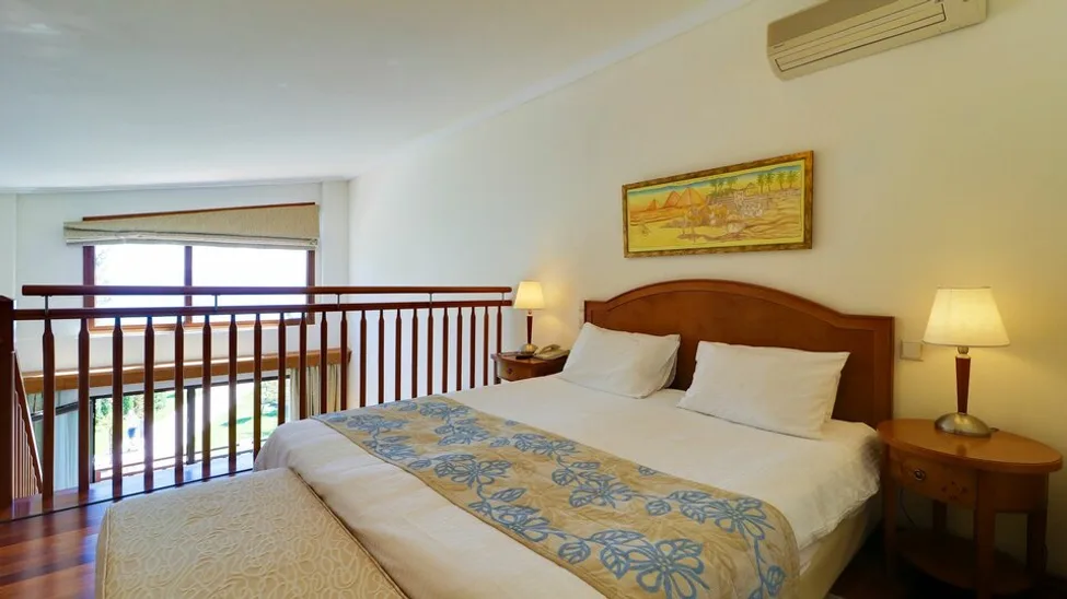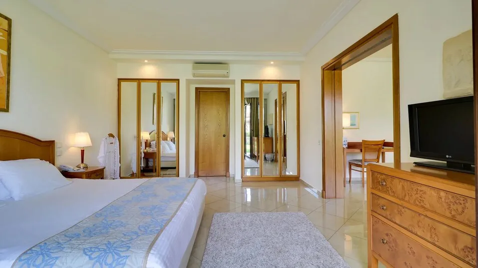 Smeštaj čine komforne sobe i apartmani raspoređeni u više zgrada unutar prostranog kompleksa, uz vrtove i bazene. Hotel raspolaže sa oko 254 smeštajne jedinice, među kojima su standardne sobe, porodične opcije i prostraniji apartmani, idealni za goste koji žele više privatnosti. Većina jedinica ima balkon ili terasu, a u zavisnosti od pozicije, pogled se pruža ka vrtu, bazenu ili moru.