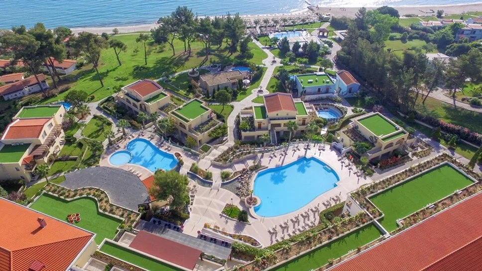 Aegean Melathron je moderan mediteranski resort sa „vila” ugođajem i puno zelenila, pa je odličan izbor za parove koji traže mir, porodice kojima su važni bazeni i animacija, ali i poslovne goste zahvaljujući konferencijskim mogućnostima.