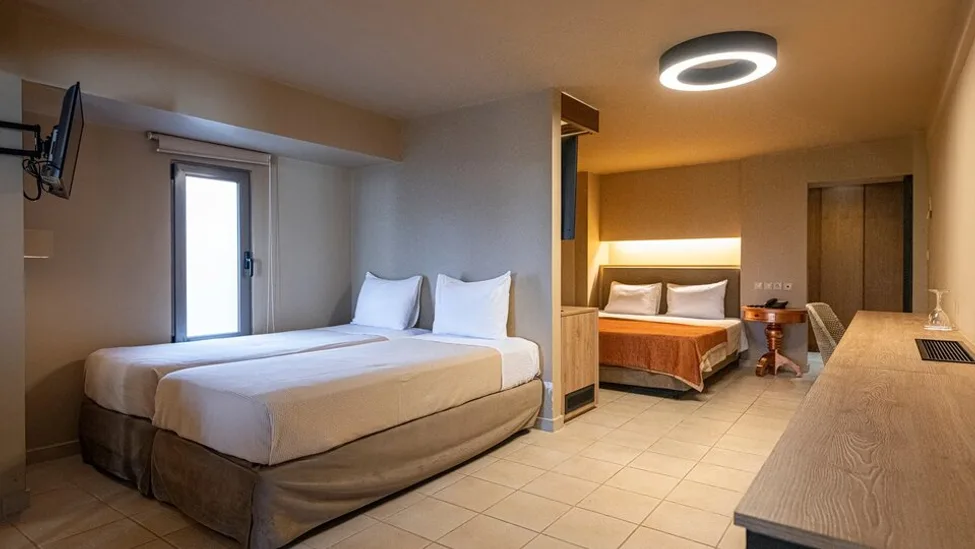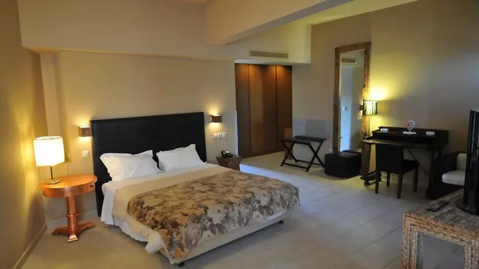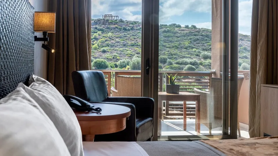 Ovaj hotel sa 4 zvezdice raspolaže sa 45 smeštajnih jedinica, pažljivo uređenih u toplim tonovima i jednostavnim linijama koje se uklapaju u mediteransko okruženje. U ponudi su dvokrevetne sobe sa pogledom na more ili hram, kao i trokrevetne i porodične sobe okrenute ka vrtu. Za goste koji žele više prostora dostupni su apartmani različitih kategorija, uključujući panoramske varijante sa velikim balkonima i pogledom na Egejsko more, kao i reprezentativni predsednički apartman.