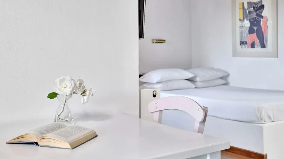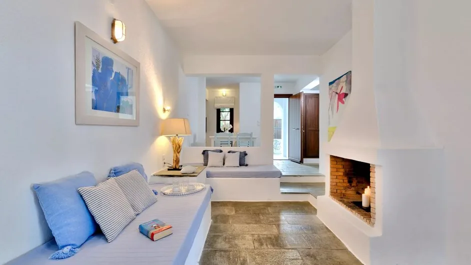 Smeštaj je organizovan kao amfiteatarski raspoređeno naselje belih letnjih kuća, sa ukupno 23 smeštajne jedinice koje pružaju osećaj privatnosti. Gostima su na raspolaganju studiji i apartmani sa nameštenim terasama ili balkonima, a pojedine jedinice imaju pogled ka moru ili vrtovima. Većina smeštaja je pogodna za parove, ali i za porodice, jer apartmani nude odvojenu spavaću sobu i dnevni boravak sa dodatnim ležajevima, kao i praktičnu čajnu kuhinju za jednostavnu pripremu obroka.