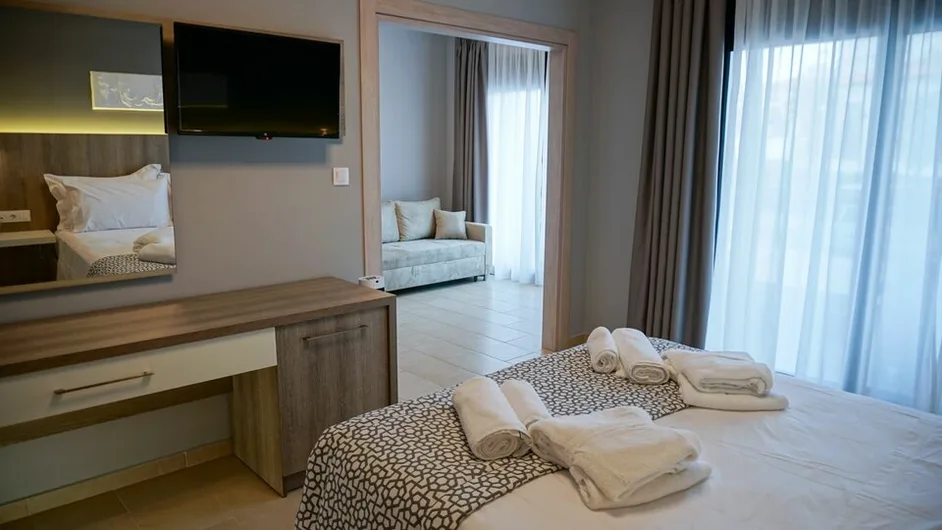 Atmosfera hotela je urbana i minimalistička, sa naglaskom na miran odmor i uredan ambijent. Idealan je za parove koji traže odličnu lokaciju uz more, ali i za manje porodice kojima odgovara blizina plaže i centra, kao i za goste koji žele praktičan, moderan smeštaj u Grčkoj, bez suvišne formalnosti.