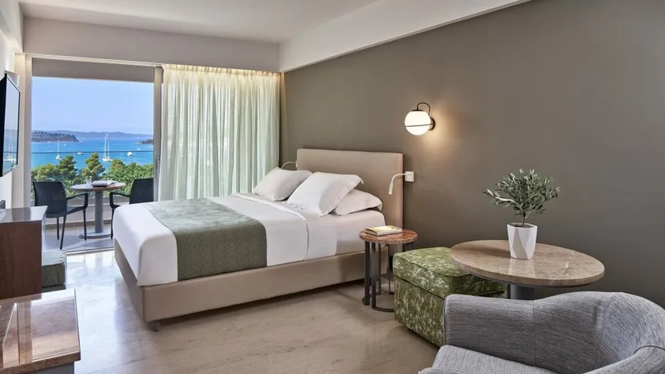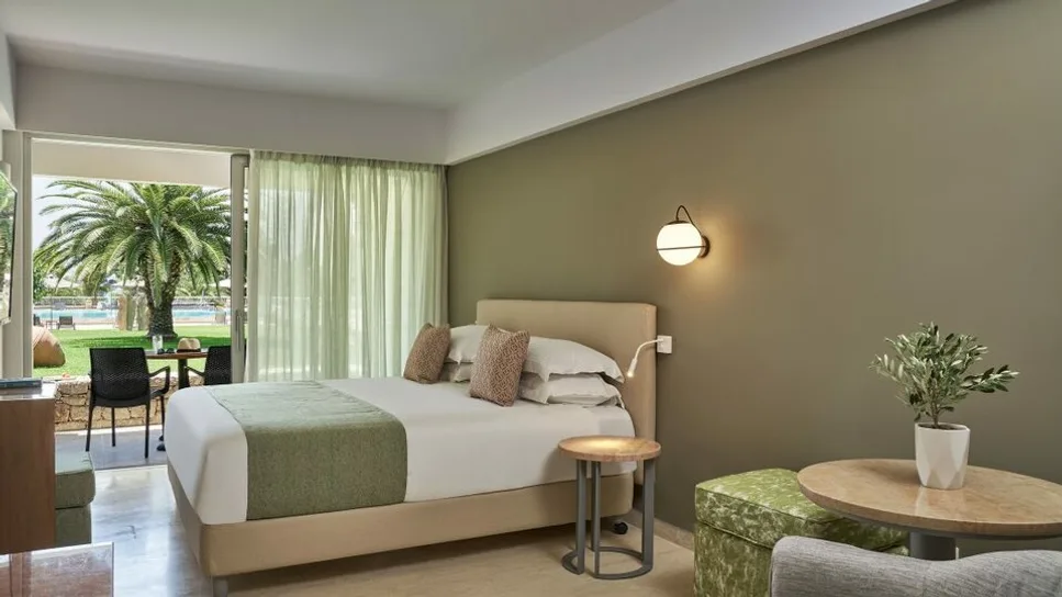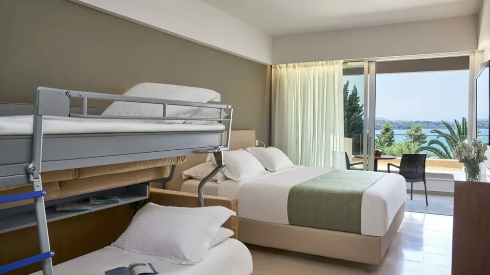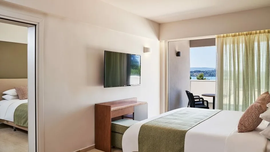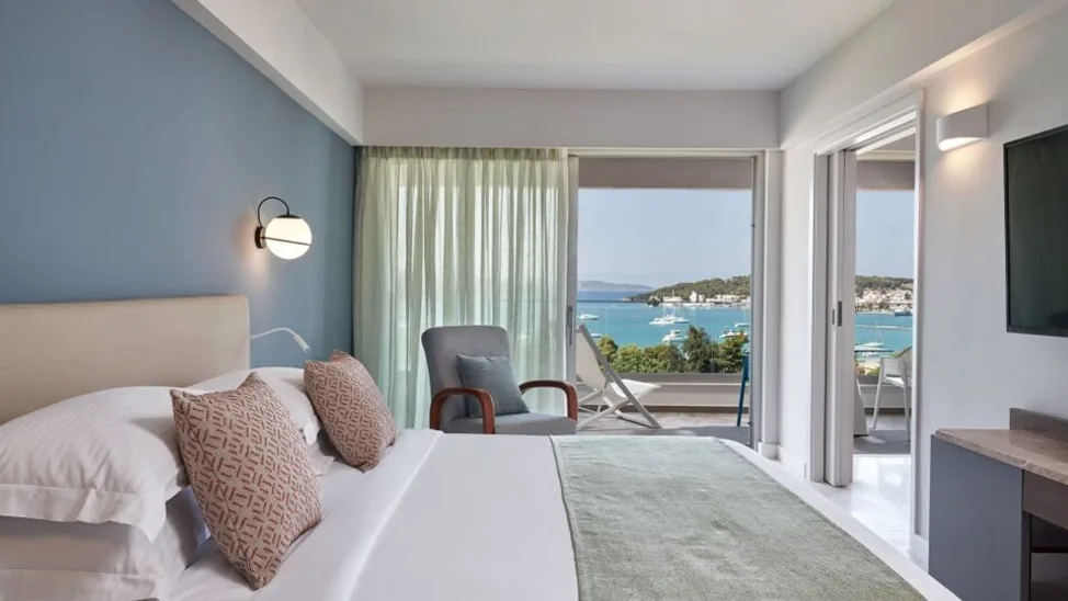 Smeštajni kapacitet obuhvata 204 sobe i 10 apartmana, a izbor je prilagođen različitim potrebama – od komfornih dvokrevetnih soba sa pogledom na vrt ili more, do porodičnih varijanti. Posebno su praktične porodične sobe sa dve povezane spavaće jedinice, pogodne za veće porodice i duži boravak. Za one koji žele više prostora i ekskluzivniji ugođaj, na raspolaganju su prostrani apartmani sa velikim balkonima i panoramskim pogledom na zaliv.