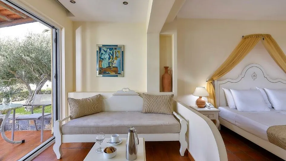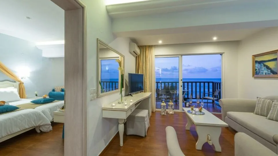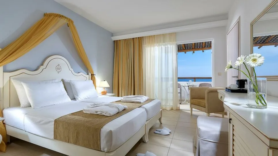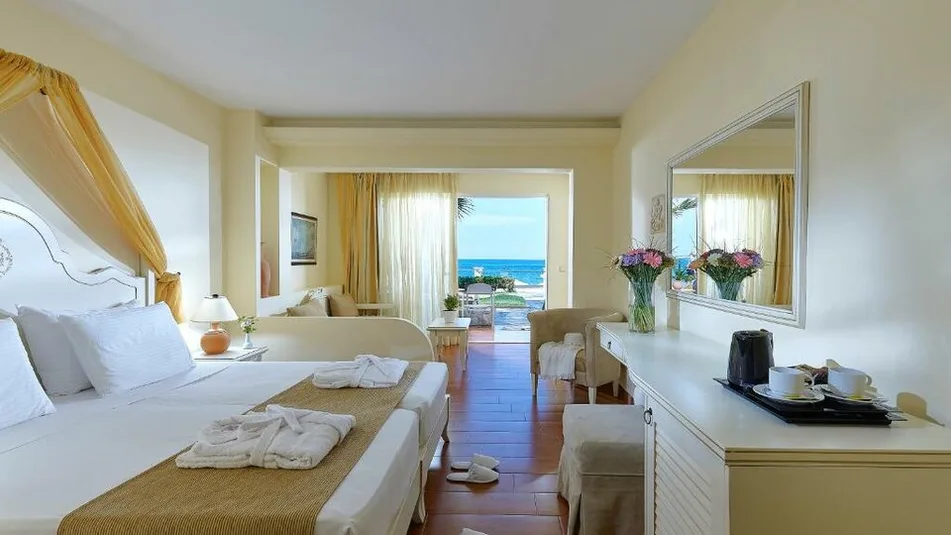 Smeštajne jedinice raspoređene su u glavnoj zgradi i u dvospratnim bungalovima u kritskom stilu, okruženim bujnim vrtovima. Na raspolaganju su komforne sobe sa pogledom na vrt ili more, kao i varijante uz samu obalu. Porodice mogu birati prostrane porodične sobe otvorenog koncepta ili porodične jedinice sa odvojenom spavaćom i dnevnom sobom, dok su za zahtevnije goste tu apartmani sa dodatnim pogodnostima i više privatnosti. Ukupno, hotel raspolaže sa 360 smeštajnih jedinica.