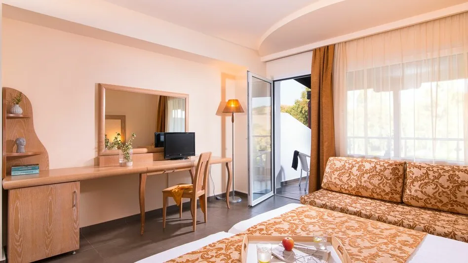 Hotel raspolaže sa 244 prostrane sobe i apartmana, osmišljenih za parove i porodice. U ponudi su standardne i superior sobe sa pogledom na vrt, kao i dvokrevetne sobe sa pogledom na bazen. Porodicama su namenjene porodične sobe sa pogledom na vrt ili more, dok gosti koji žele više komfora mogu birati apartmane sa pogledom na more, uključujući i varijante sa jednom spavaćom sobom. Smeštajne jedinice su funkcionalno uređene i prilagođene udobnom boravku tokom celog odmora.