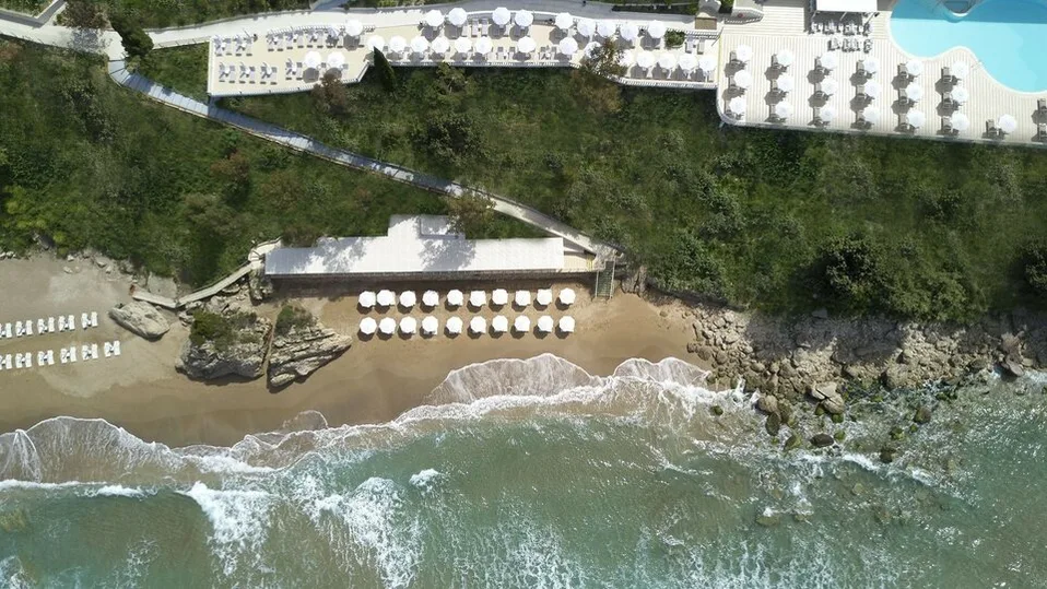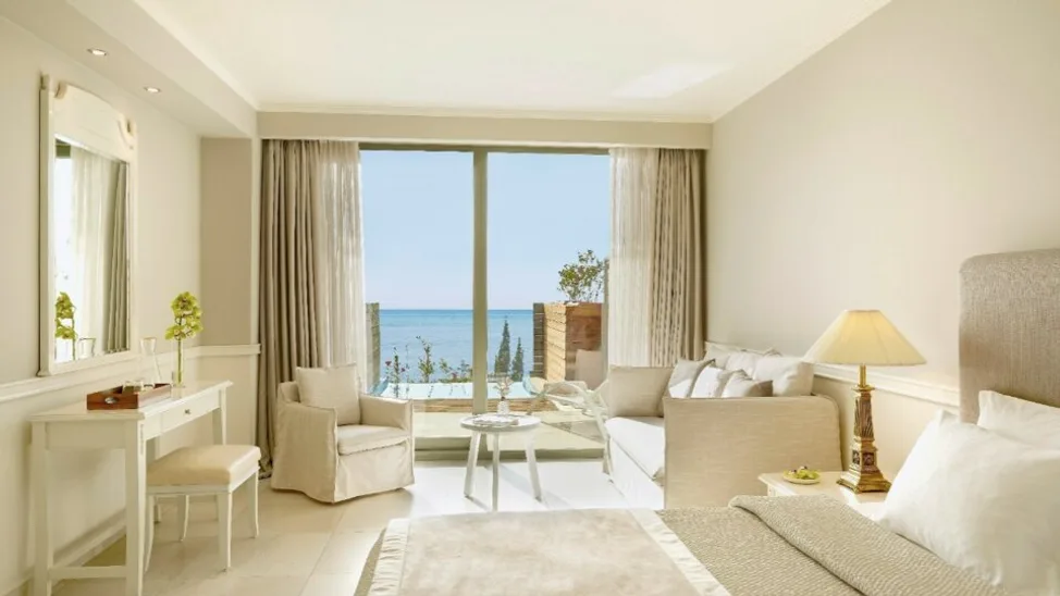 Smeštajne jedinice su moderno uređene, u smirenim tonovima i sa akcentom na komfor i privatnost. U ponudi su deluxe i premium sobe, kao i apartmani različitih kategorija, uključujući varijante sa direktnim izlazom na bazen, deljenim bazenom ili privatnim bazenom. Posebno se izdvajaju prostraniji apartmani sa pogledom na more, namenjeni gostima koji žele više prostora i luksuzniji doživljaj. Većina smeštaja ima balkon ili terasu, idealne za uživanje u zalasku sunca.
