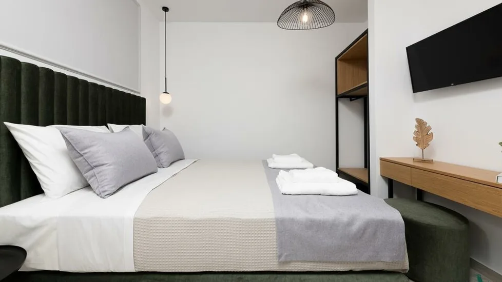 Smeštaj u hotelu je osmišljen moderno i funkcionalno, uz prijatne tonove i savremenu dekoraciju. Gostima su na raspolaganju različite kategorije, od komfornih dvokrevetnih i trokrevetnih soba do prostranijih jedinica poput apartmana i mezoneta. Posebno se izdvajaju deluks sobe i apartmani, a neke smeštajne jedinice mogu ugostiti i porodice, uključujući opcije za smeštaj do četiri odrasle osobe ili porodicu sa dvoje dece. Većina jedinica ima privatni balkon, često sa pogledom ka bazenu ili luci.
