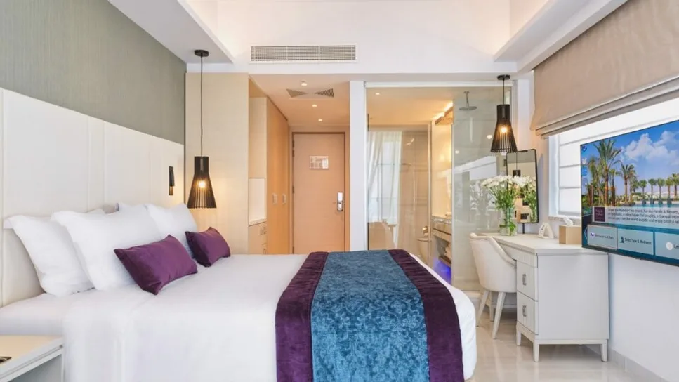 Smeštaj je osmišljen za maksimalnu privatnost i komfor, a hotel raspolaže sa 140 soba i apartmana raspoređenih na pet spratova. U ponudi su moderne deluxe i superior sobe, kao i prostraniji apartmani za goste koji žele više prostora i dodatne pogodnosti. Najatraktivnije su panoramske jedinice na najvišim spratovima, sa velikim verandama i pogledom na okolinu i obalu. Kapacitet je prilagođen boravku dve odrasle osobe, uz pažljivo birane detalje za odmor bez kompromisa.
