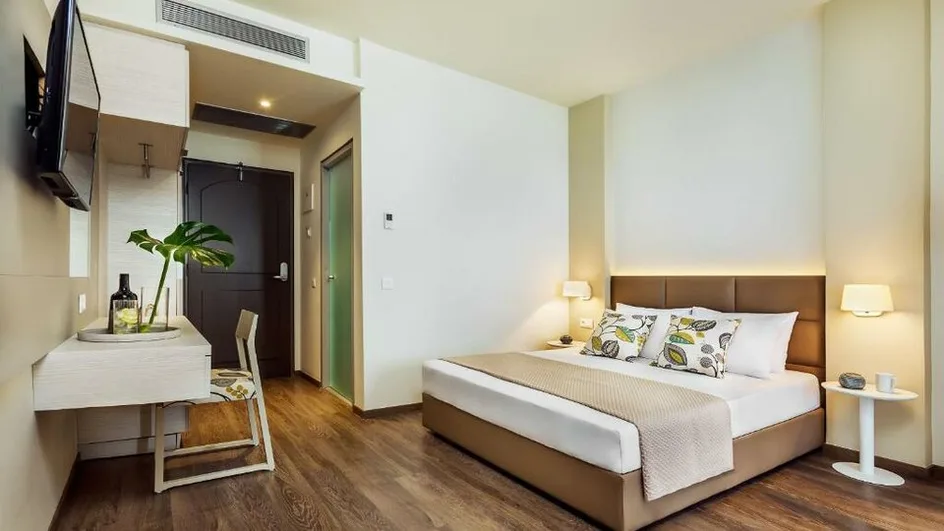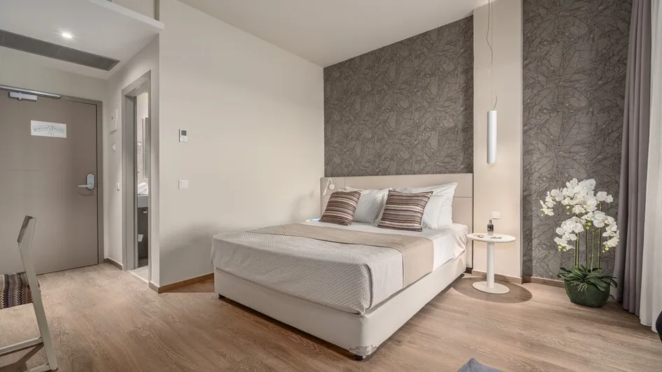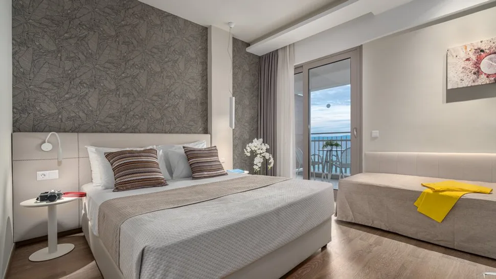 Smeštaj je osmišljen za odmor uz maksimalnu udobnost: hotel nudi moderno uređene dvokrevetne sobe sa pogledom na vrt ili more, kao i prostranije varijante za goste kojima je važan dodatni komfor. U ponudi su i apartmani, uključujući i najluksuzniji penthaus apartman, pogodan za porodice, sa većom kvadraturom i kapacitetom do četiri osobe. Većina jedinica ima balkon, savremene sadržaje i pažljivo birane detalje za prijatan boravak.