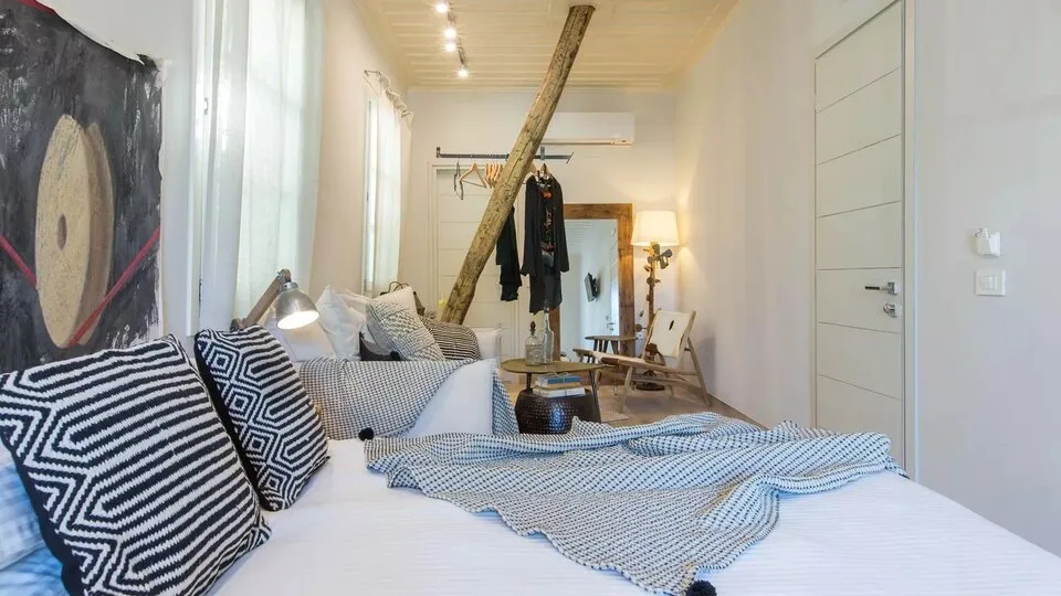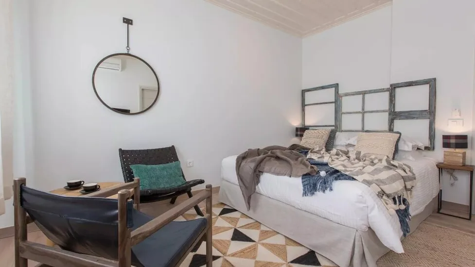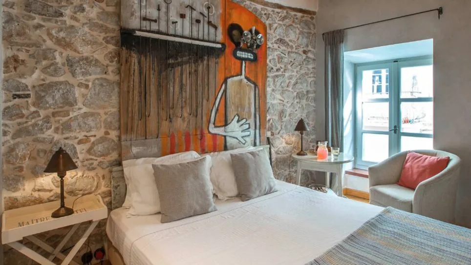 Smeštaj je organizovan u dve boutique zgrade, Amymone i Adiandi, udaljene oko 10–15 m jedna od druge, pa sobe mogu biti raspoređene u oba objekta. Hotel nudi elegantne dvokrevetne sobe i komforne apartmane, idealne za parove, ali i za goste koji žele više prostora. Enterijeri spajaju tradicionalne elemente sa savremenim detaljima, a u pojedinim sobama ističu se drveni podovi i plafoni, kao i pažljivo birani umetnički akcenti.