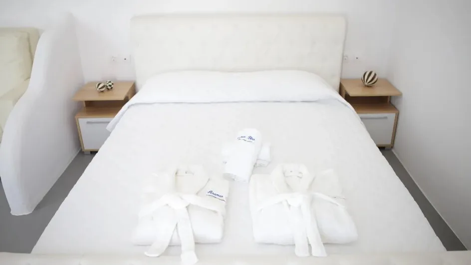 Smeštaj u hotelu je boutique koncepta, sa ukupno 19 soba, uređenih u duhu tradicionalne kikladske arhitekture. U ponudi su različite kategorije soba, uključujući standardne i superior varijante, kao i sobe sa pogledom ka moru ili bazenu, namenjene parovima ili manjim grupama. Sobe su osmišljene da pruže komforan boravak, uz funkcionalan raspored i prijatnu, svetlu atmosferu karakterističnu za Mikonos.