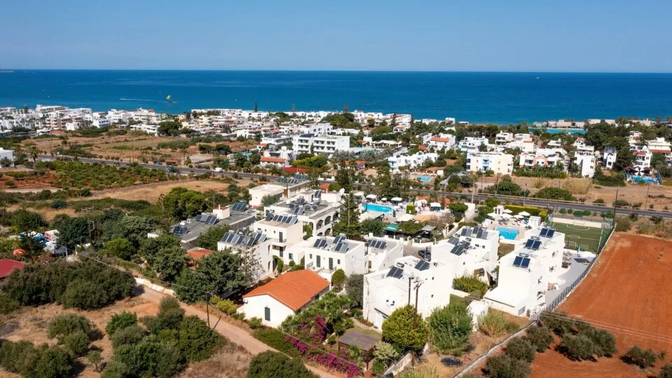 Hotel raspolaže sa približno 79 smeštajnih jedinica raspoređenih u niskim zgradama, što doprinosi prijatnom, „resort“ osećaju. U ponudi su standardne sobe, kao i porodične opcije, pogodne za boravak parova ili porodica sa decom. Sobe su funkcionalno opremljene za letnji odmor, sa kupatilom i terasom ili balkonom, a raspored kapaciteta odgovara gostima koji traže dobru vrednost za novac u popularnom delu Krita.