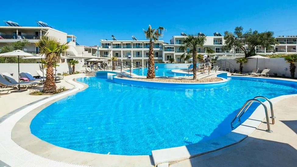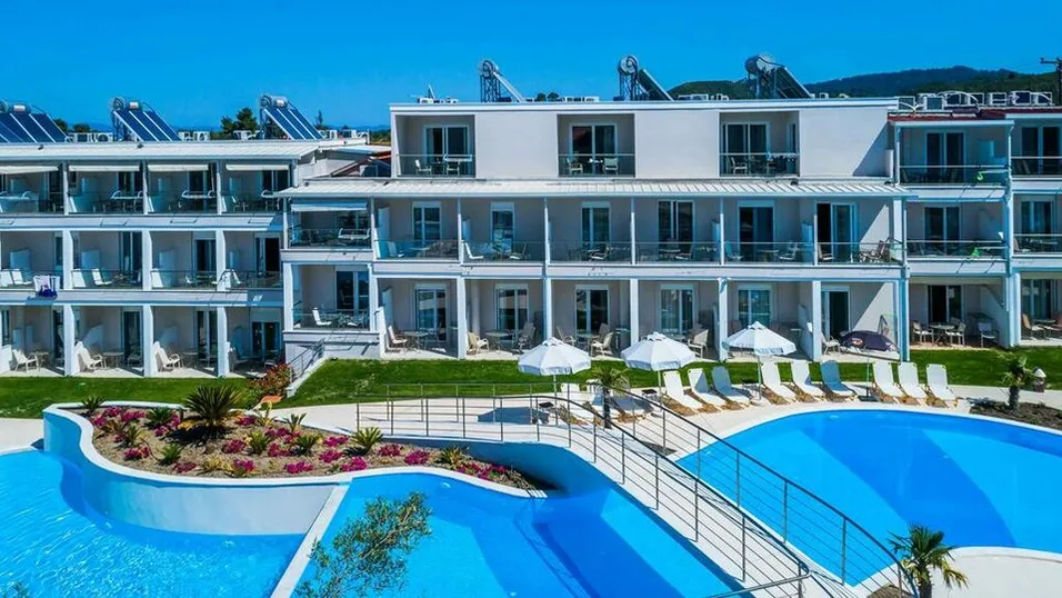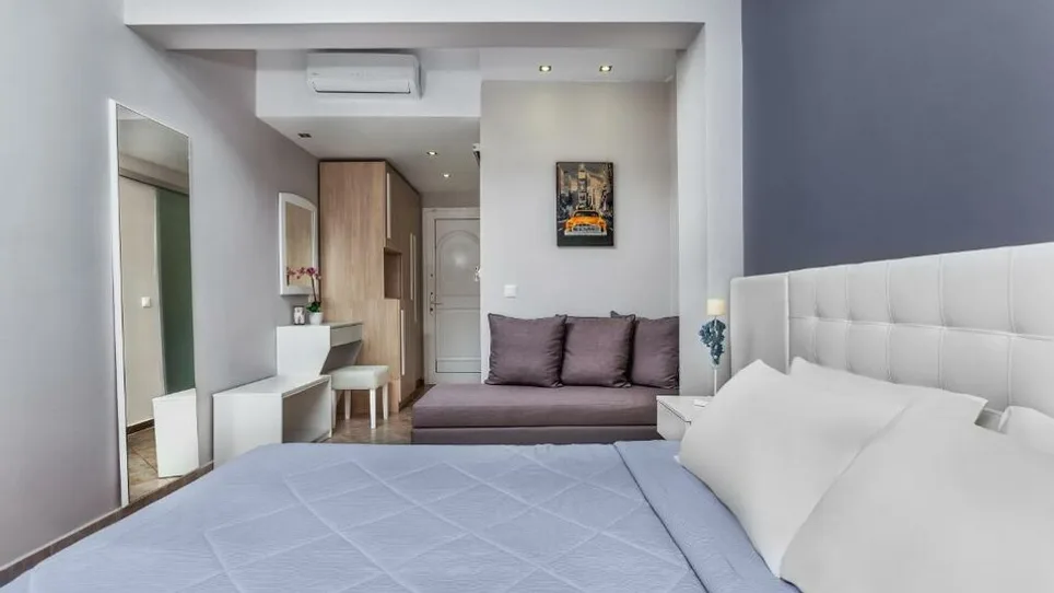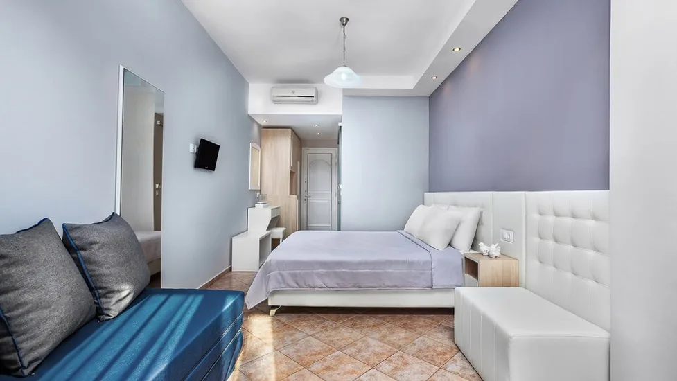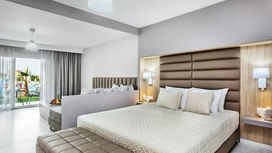 Smeštaj je organizovan u moderno uređenim jedinicama koje su namenjene parovima i porodicama. Gostima su na raspolaganju studiji i porodične opcije, uključujući dvokrevetne sobe (oko 18–22 m²) za do dve osobe, kao i prostranije porodične jedinice sa dve odvojene spavaće sobe (oko 26–30 m²) za do četiri odrasle osobe. Većina smeštaja ima balkon ili popločano dvorište sa pogledom na vrt, bazen ili Egejsko more, uz praktične sadržaje za komforan odmor.