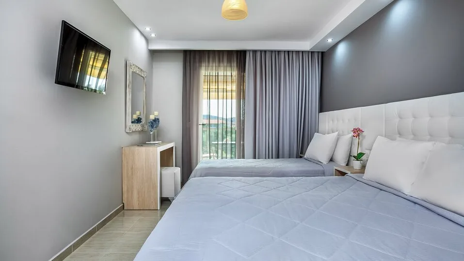 Ambijent hotela je neformalan i porodičan, sa negovanim vrtom i mediteranskim ugođajem. Idealan je za parove koji žele dobru lokaciju blizu dešavanja, ali i za porodice kojima su važni sadržaji za decu i praktičan smeštaj. Hotel pruža prijatan balans između mira, zabave i komfora, uz prepoznatljivo grčko gostoprimstvo.