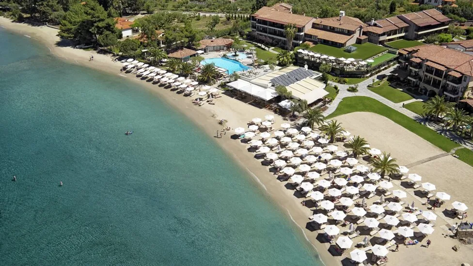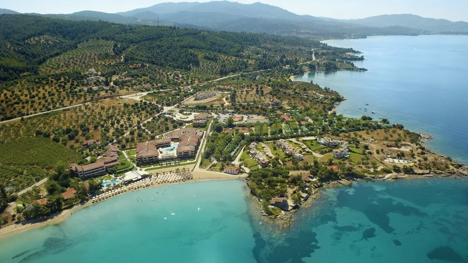 Anthemus Sea Beach Hotel & Spa se nalazi u mestu Akti Elias, na Sitoniji, na Halkidikiju, u mirnoj uvali uz peščanu obalu koja je nagrađena Plavom zastavom. Hotel je smešten na prostranom, uređenom posedu okruženom mediteranskim zelenilom, pa pruža osećaj privatnosti i odmora daleko od gužve, a ipak je dobro povezan sa najpoznatijim mestima u okolini. Do centra Nikitija stiže se za oko 12 km, dok je Neos Marmaras udaljen približno 15 minuta vožnje. Najbliži veći aerodrom je u Solunu, na oko 80–83 minuta vožnje, što ga čini praktičnim izborom i za kraći i za duži odmor.