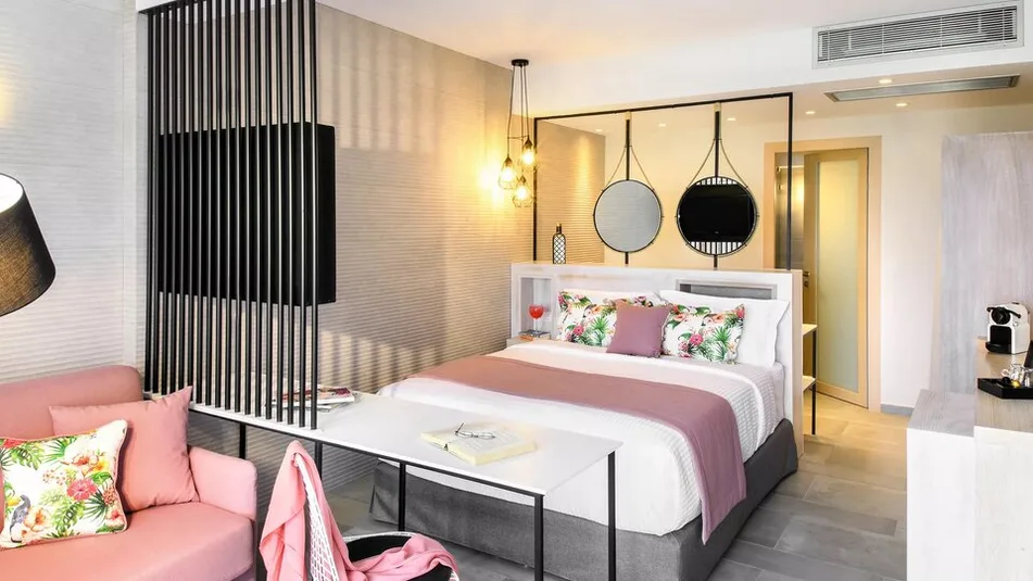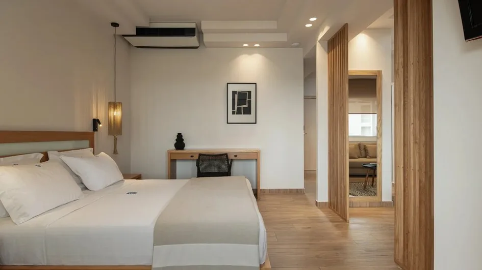 Smeštajne jedinice su zamišljene kao udobne, elegantne i funkcionalne, sa prirodnim materijalima i prijatnim tonovima. U ponudi su dvokrevetne sobe sa pogledom na baštu ili more, kao i trokrevetne opcije za porodice. Za goste koji žele više prostora dostupni su apartmani različitih kapaciteta, uključujući porodične varijante sa odvojenom spavaćom sobom, kao i ekskluzivnije smeštaje sa dodatnim komforom.