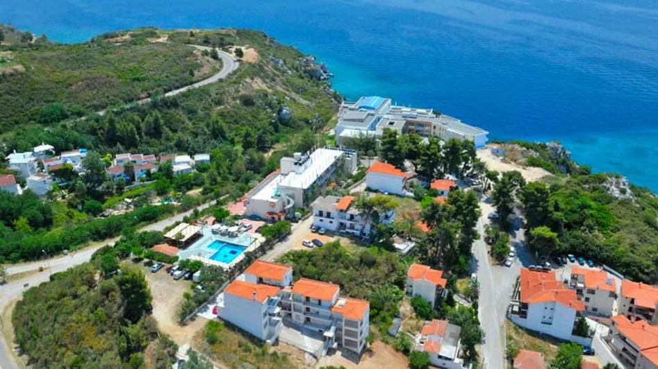 Hotel Aphrodite se nalazi u mestu Agia Paraskevi, na Halkidikiju, u Grčkoj, u mirnom okruženju poznatom po termalnim izvorima. Prednost lokacije je odlična povezanost i blizina atrakcija: čuvene termalne banje Agia Paraskevi udaljene su oko 400 m, dok je najbliža plaža na približno 200 m od hotela, idealno za brze odlaske na more tokom dana. Za goste koji dolaze avionom, aerodrom u Solunu je na oko 105 km, a u okolini se nalaze taverne i sadržaji za večernju šetnju i opuštanje.