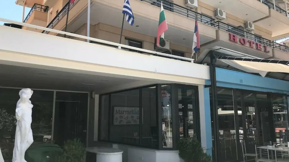 Hotel Aqua Beachfront nalazi se u mestu Olympic Beach, u Centralnoj Makedoniji u Grčkoj, na samom šetalištu uz obalu, idealno za lagane večernje šetnje i brz izlazak na more. Do plaže se stiže za svega nekoliko koraka, dok su kafići, prodavnice i letnja atmosfera centra letovališta praktično nadohvat ruke. Hotel je od aerodroma u Solunu udaljen oko 95 km, pa je pogodan i za goste koji žele udoban transfer i bezbrižan početak odmora. ([aquahotel.gr](https://aquahotel.gr/?utm_source=openai))