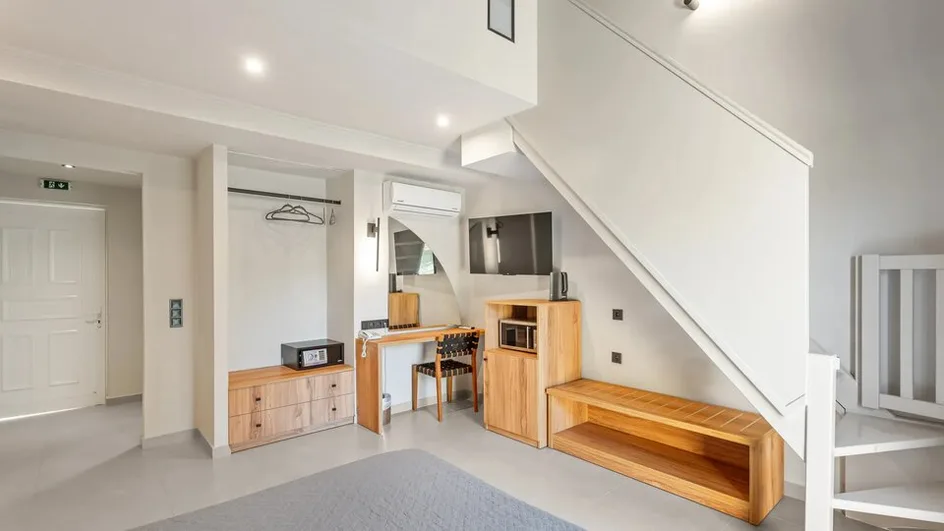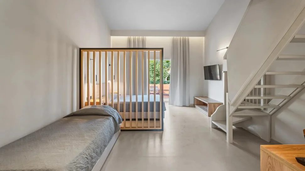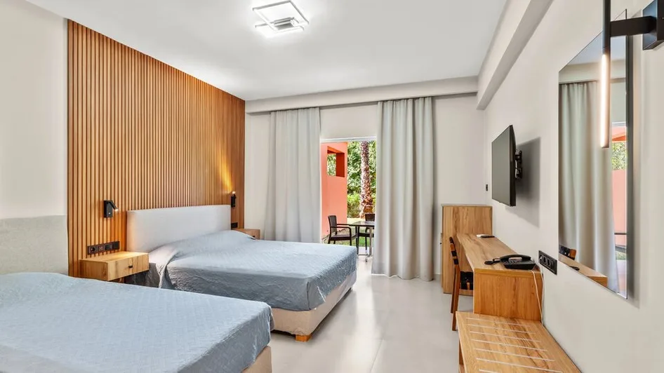 Smeštaj je organizovan kao malo „naselje“ u baštenskom ambijentu, a hotel raspolaže sa 203 sobe različitih kategorija. Gostima su na raspolaganju dvokrevetne sobe (uz mogućnost pomoćnog ležaja), kao i prostranije porodične jedinice sa odvojenim delovima za spavanje. Za veće porodice posebno su pogodni apartmani, uključujući opcije koje mogu primiti i do 5–6 osoba, uz više prostora za komforan boravak.