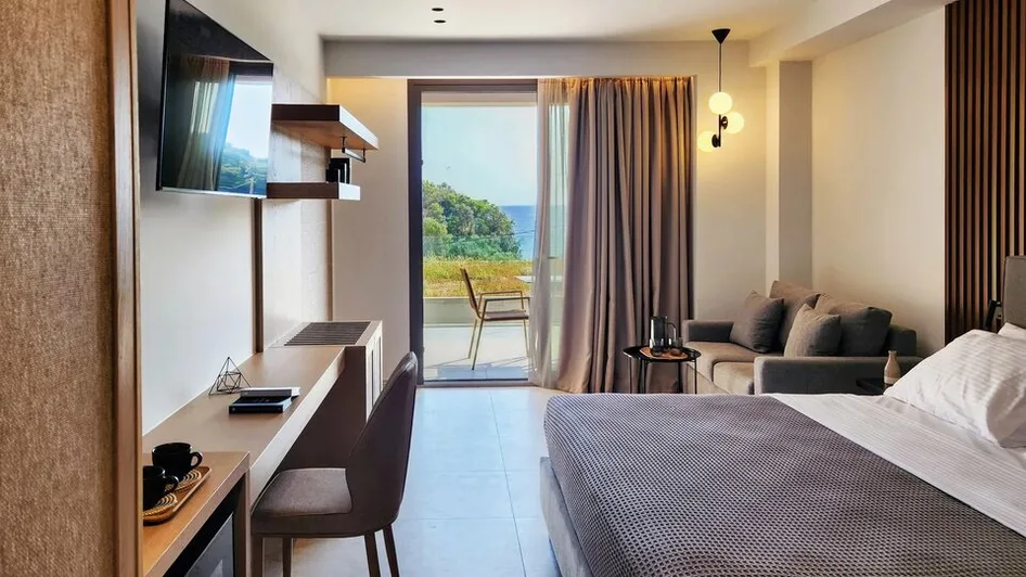 Smeštaj je osmišljen u duhu savremenog mediteranskog stila, sa akcentom na prirodne materijale i udobnost. U ponudi su elegantni apartmani i sobe, među kojima se posebno izdvajaju Superior i Executive varijante, kao i porodični apartmani za komforan boravak više osoba. Jedinice su prozračne, sa modernim kupatilom, prostorom za odmor i sadržajima koji doprinose bezbrižnom odmoru, a u pojedinim tipovima moguć je i pogled ka moru.