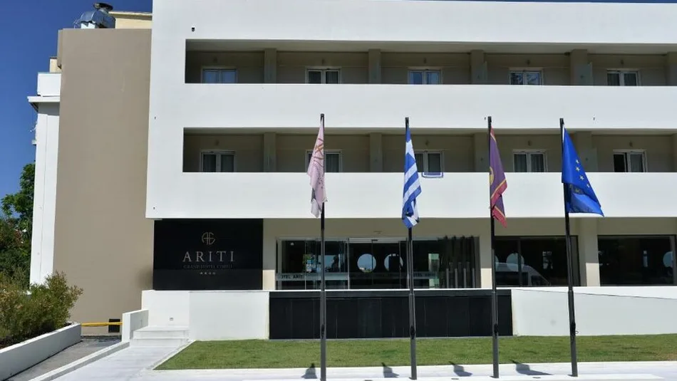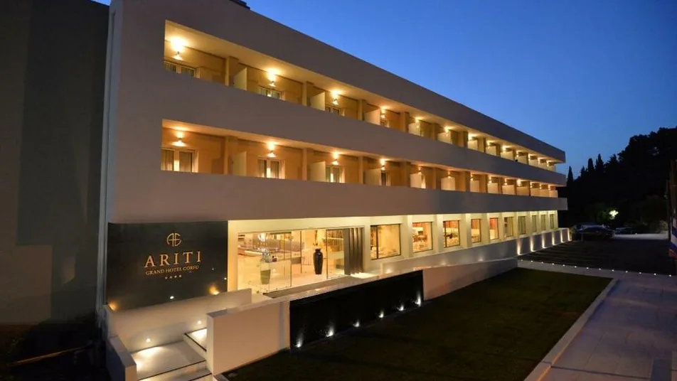 Hotel Ariti Grand se nalazi u mestu Kanoni, na ostrvu Krf u Grčkoj, u okruženju zelenila i jonske lagune, sa lepim pogledima na zalaske sunca. Kao hotel sa 4 zvezdice, idealna je baza za istraživanje ostrva: od centra grada Krfa udaljen je oko 3,5–5 km, dok je aerodrom na svega 1,5–3 km, što putovanje čini posebno praktičnim. Najbliža plaža je približno 150 m od hotela, a u okolini se lako pronalaze šetališta i vidikovci po kojima je Kanoni poznat.