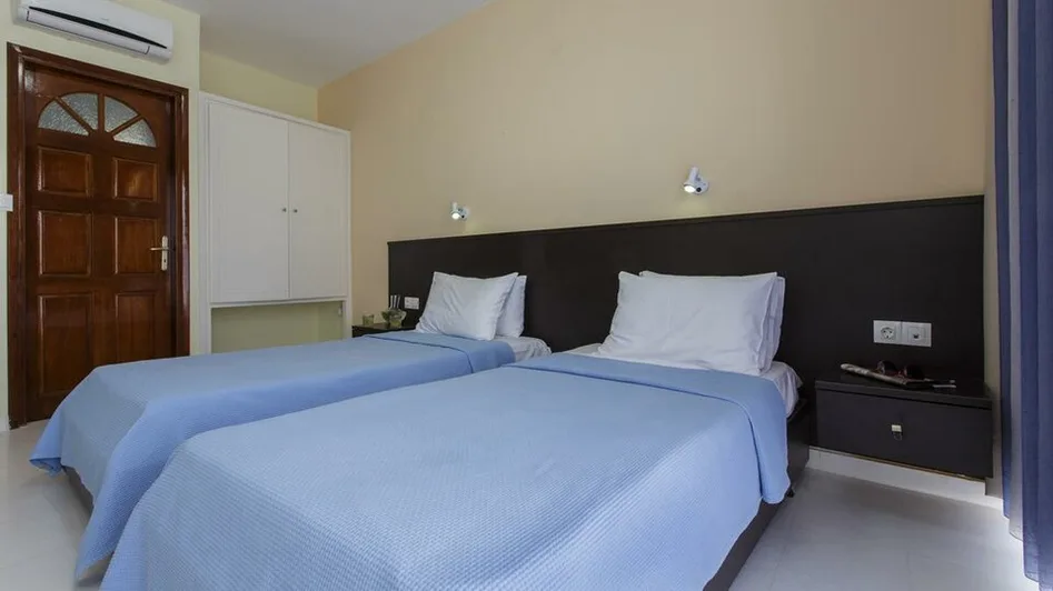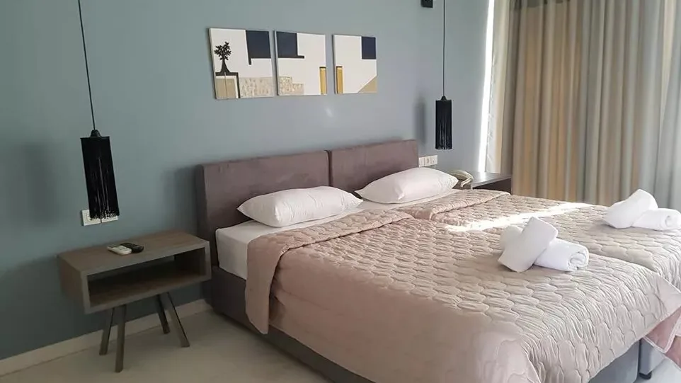 Smeštaj je osmišljen za udobnost i odmor, uz naglasak na prostrane terase i pogled ka moru. Na raspolaganju su standardne dvokrevetne sobe od 22 m² za do dve odrasle osobe, superior sobe od 25 m² za dve osobe, kao i komforniji apartmani: veći apartman od 35 m² i dvosobni apartman od 50 m² koji može da primi do pet osoba. Većina jedinica ima opremljenu verandu, a enterijer je moderan i pažljivo uređen.