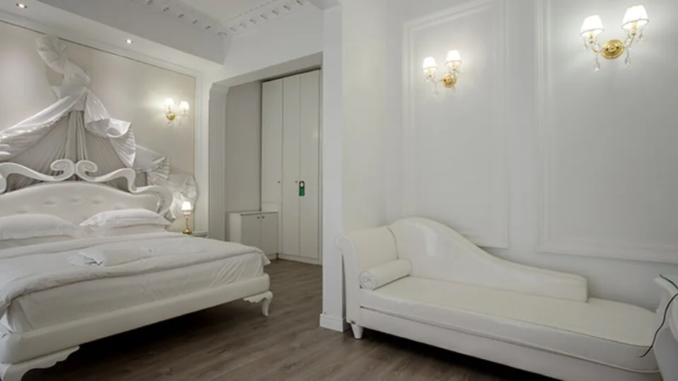 Smeštaj u hotelu je intimnog karaktera i namenjen gostima koji vole mirniji boravak u manjem objektu. Hotel raspolaže sa 13 soba i apartmana, uređenih u prepoznatljivom stilu belih tonova sa zlatnim detaljima. U ponudi su standardne i deluxe sobe, kao i prostraniji apartmani pogodni za parove ili goste koji žele više komfora. Mnoge smeštajne jedinice imaju privatne balkone, a u sobama su dostupni savremeni sadržaji za udoban gradski odmor.