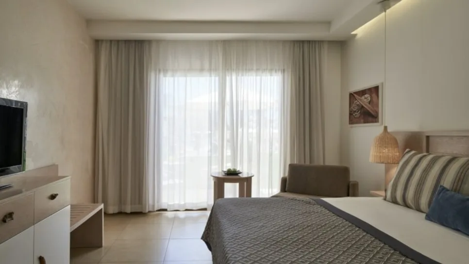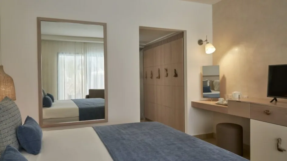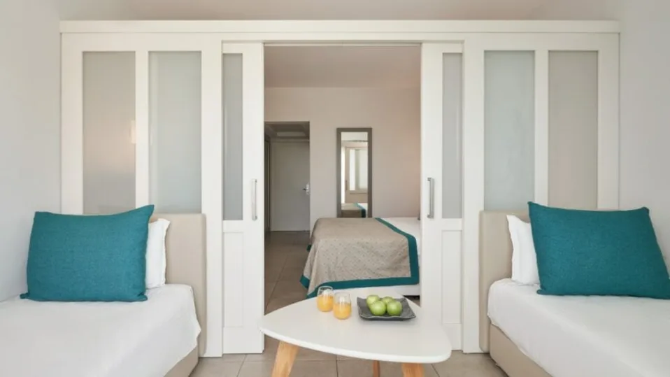 Smeštaj je osmišljen za udobnost parova i porodica, uz veliki izbor kategorija. Resort raspolaže sa 414 soba i apartmana mediteranskog stila, od standardnih dvokrevetnih soba do prostranih porodičnih varijanti sa kliznim pregradama. Porodične sobe najčešće primaju do četiri osobe, dok su porodični apartmani sa jednom spavaćom sobom kapaciteta do pet osoba, a dostupne su i veće porodične jedinice za višečlane grupe. Posebno su tražene sobe sa direktnim izlazom na bazen i apartmani sa dodatnim komforom.
