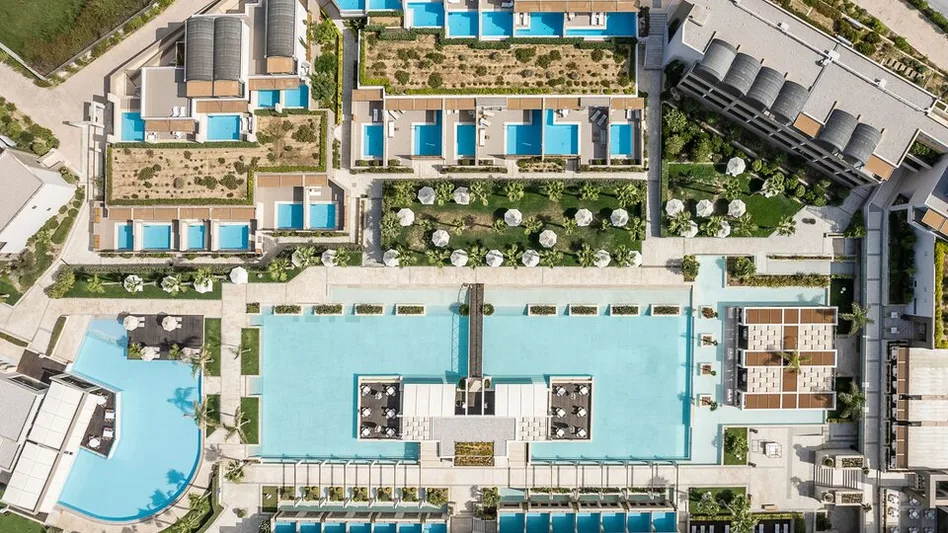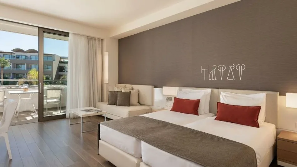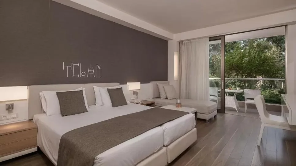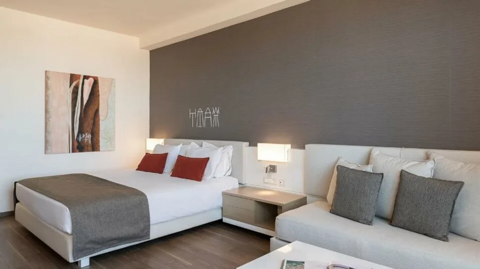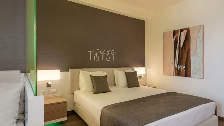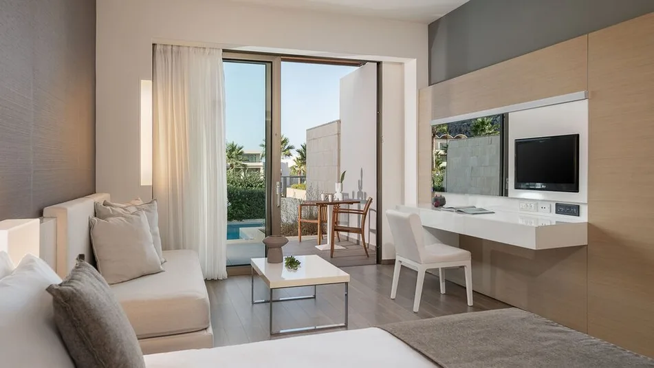 U smeštajnom delu, hotel raspolaže sa 328 soba i apartmana, moderno uređenih i osmišljenih tako da kombinuju komfor i savremen dizajn sa diskretnim detaljima inspirisanim minojskom tradicijom. U ponudi su različite kategorije soba za parove i porodice, kao i prostraniji apartmani za goste koji žele više privatnosti. Deo jedinica je posebno atraktivan zbog mogućnosti privatnog ili deljenog bazena, što boravku daje dodatnu dozu luksuza.