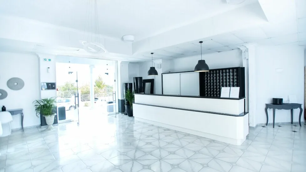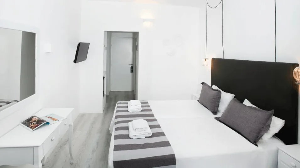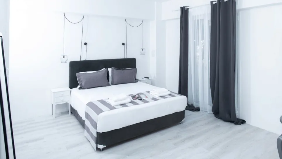 Hotel kategorije 4 zvezdice raspolaže sa 99 renoviranih soba (osveženih i modernizovanih), uređenih u savremenom stilu sa naglašenim crno-belim tonovima. Gostima su na raspolaganju standardne dvokrevetne sobe sa pogledom na vrt ili bočnim pogledom na more, kao i prostranije smeštajne jedinice tipa apartmani, pogodne za parove i porodice. U zavisnosti od tipa, sobe mogu primiti do dve osobe, odnosno do tri ili četiri gosta u većim jedinicama, uz balkon i funkcionalan raspored.