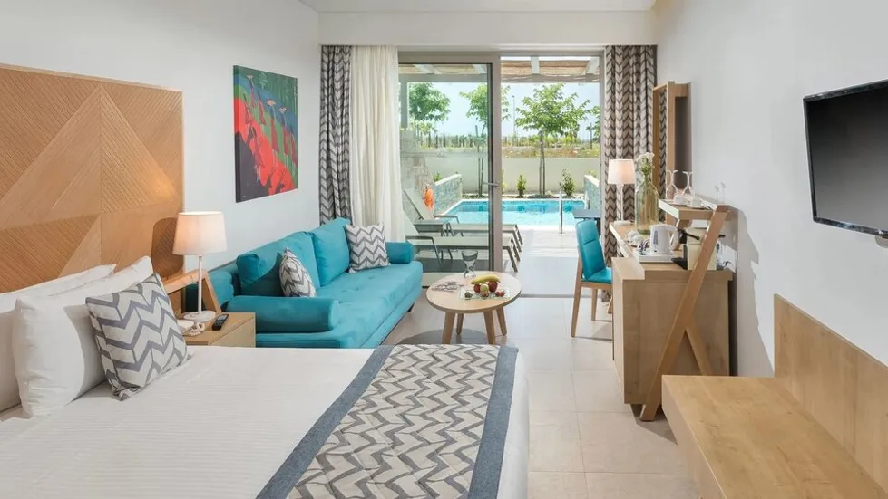 Smeštaj je osmišljen za komfor i privatnost: hotel raspolaže sa 92 smeštajne jedinice, uključujući elegantne superior sobe sa balkonom, kao i prostranije apartmane različitih kategorija. Posebno se izdvajaju apartmani sa đakuzijem ili privatnim bazenom, namenjeni gostima koji žele dodatnu dozu luksuza i intimniji ugođaj. Kapaciteti su prilagođeni boravku dve do tri osobe, uz moderan stil, balkon ili terasu i pažljivo birane detalje za potpuni odmor.