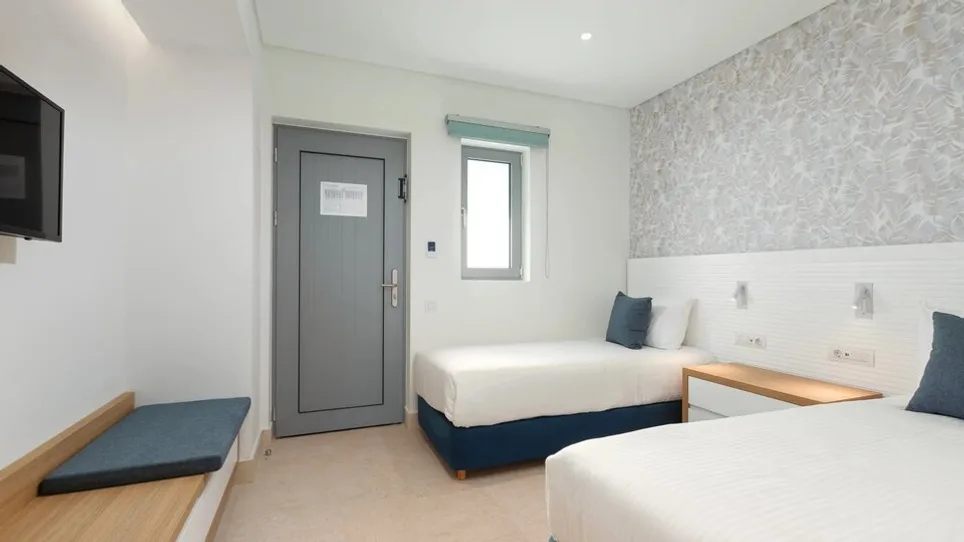 Smeštaj je osmišljen moderno i komforno, a hotel raspolaže sa 92 sobe različitih kategorija. Ponuda obuhvata standardne dvokrevetne sobe, kao i prostranije porodične opcije i apartmane. Posebno se izdvajaju porodični apartmani od oko 57 m², sa odvojenom spavaćom sobom i dnevnim boravkom, namenjeni smeštaju do četiri osobe, kao i apartmani sa đakuzijem koji mogu primiti i do pet osoba. U sobama su dostupni sadržaji poput sefa, mini-frižidera i pribora za kafu i čaj.
