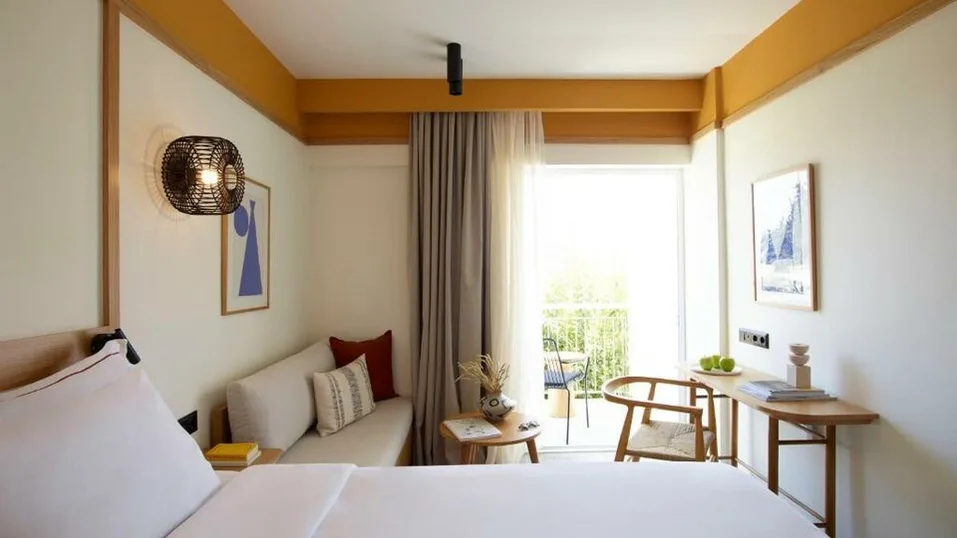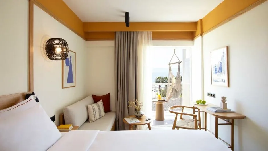 Smeštaj čini ukupno 175 soba, bungalova i apartmana, osmišljenih tako da odgovore i parovima i porodicama. Na raspolaganju su komforne dvokrevetne i porodične opcije, kao i veći apartmani, a pojedine jedinice mogu da ugoste do 6 osoba. Većina smeštajnih jedinica ima balkon i pogled ka moru, bazenu ili pažljivo uređenom vrtu, uz prijatan, svetao ambijent u letnjem grčkom stilu.