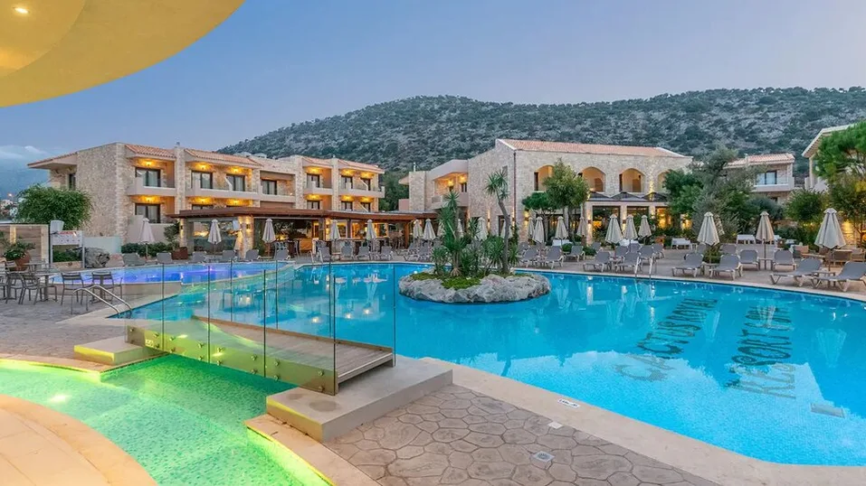 Hotel raspolaže sa više bazenskih celina, uključujući i unutrašnji bazen, a organizovana plaža nudi ležaljke i suncobrane uz more. Gastronomska ponuda obuhvata glavni restoran sa obrocima, kao i restoran sa jelovnikom za mediteranske specijalitete, uz više barova za osveženje tokom dana i večeri. Za potpuno opuštanje tu je spa centar sa tretmanima za telo i lice, dok su dostupni i usluga lekara, iznajmljivanje automobila, parking, kao i dnevna i večernja animacija.