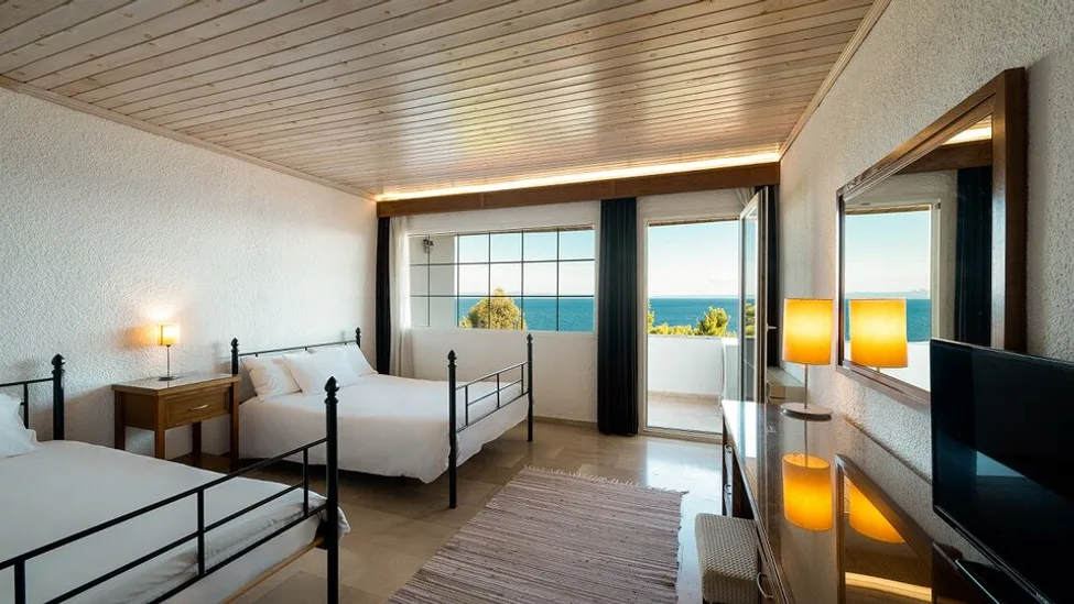 Smeštaj je organizovan u ukupno 208 soba različitih kategorija, namenjenih parovima, porodicama i gostima koji žele više prostora. U ponudi su jednokrevetne i dvokrevetne sobe sa pogledom na vrt ili more, kao i prostraniji apartmani sa pogledom na more. Većina jedinica ima balkon ili terasu, a kapaciteti su prilagođeni boravku od jedne do više osoba, uz komforan raspored za porodična putovanja.