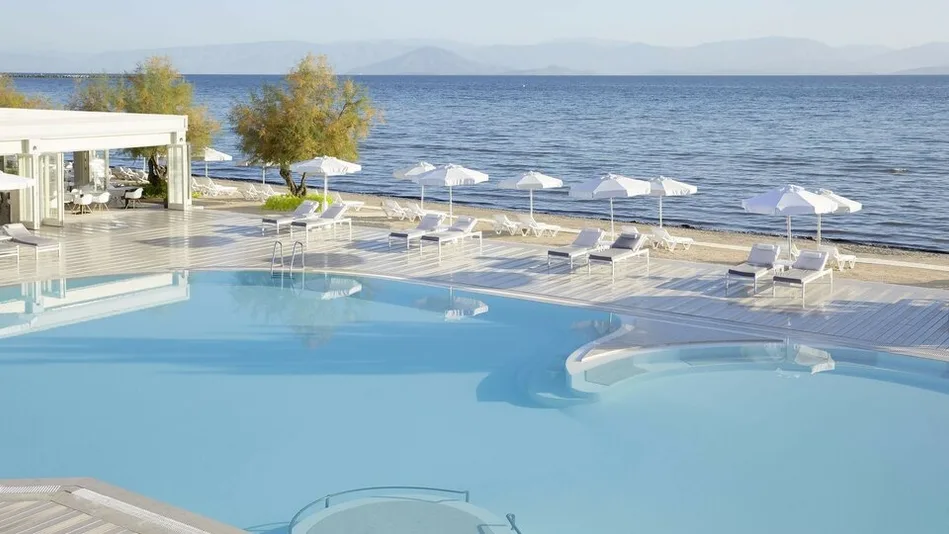Hotel Capo Di Corfu sa kategorijom 5 zvezdica nalazi se u mestu Agios Petros, na jugu ostrva Krf, u Jonskim ostrvima, u Grčkoj. Smešten je uz obalu i nudi neposredan kontakt sa morem, u mirnijem okruženju punom zelenila, idealnom za opuštanje daleko od gradske gužve. Do glavnog grada Krfa stiže se za oko 43 km, dok je aerodrom udaljen približno 42 km, što ga čini pogodnim i za putnike koji žele dobar balans između privatnosti i dostupnosti sadržaja ostrva.