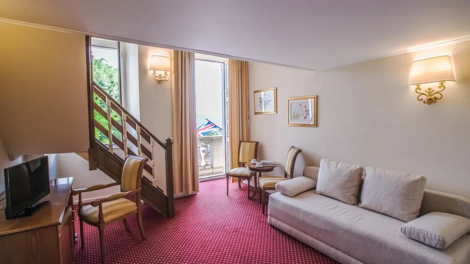 Smeštaj je organizovan u ukupno 50 soba, raspoređenih u istorijskoj zgradi sa karakterom. Gostima su na raspolaganju jednokrevetne sobe, komforne dvokrevetne sobe, kao i superior sobe sa balkonom i pogledom, dok su za porodice posebno praktične mezonet-sobe (dupleks) koje mogu ugostiti do dve odrasle osobe i dvoje dece. Enterijeri kombinuju klasičnu eleganciju i savremenu udobnost, uz klimatizaciju, kupatilo, televizor i mini-frižider.