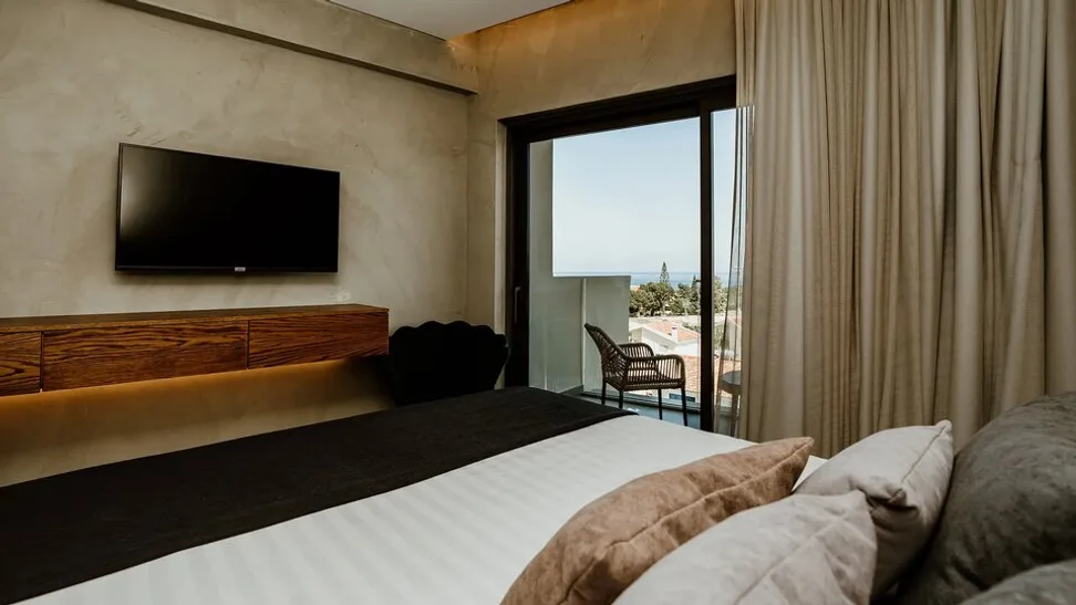 Smeštaj je moderan i pažljivo uređen, sa akcentom na komfor i pogled na more. Hotel raspolaže različitim tipovima soba, uključujući superior sobe sa panoramskim pogledom na more, sobe sa bočnim pogledom na more, kao i trokrevetne varijante za goste kojima je potreban dodatni ležaj. Posebno se izdvajaju wellness sobe sa dodatnim pogodnostima za opuštanje, idealne za parove koji žele mir i privatnost. Kategorija hotela je 4 zvezdice, što se vidi u kvalitetu opreme i usluge.