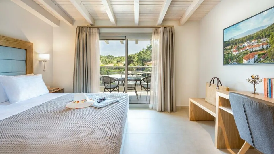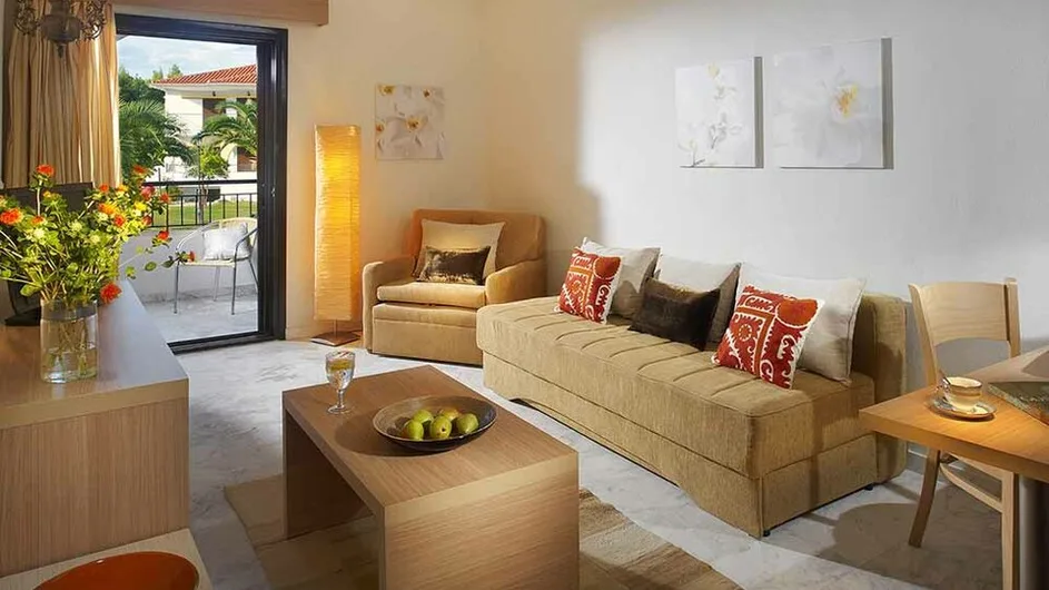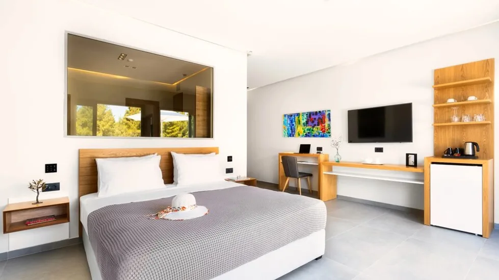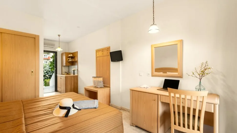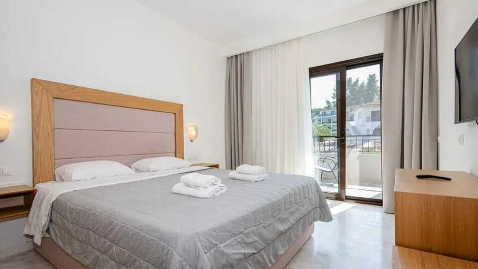 Kompleks kategorije 4 zvezdice raspolaže sa ukupno 200 smeštajnih jedinica raspoređenih u zelenilu, sa balkonima ili verandama koje gledaju na vrt, borovu šumu ili bazen. U ponudi su studiji za dve ili tri osobe, kao i apartmani sa odvojenim prostorijama, pogodni za porodice. Porodični apartmani mogu da prime i do pet osoba, dok su novije renovirane sobe i suite opcije namenjene gostima koji žele savremeniji komfor i više prostora.
