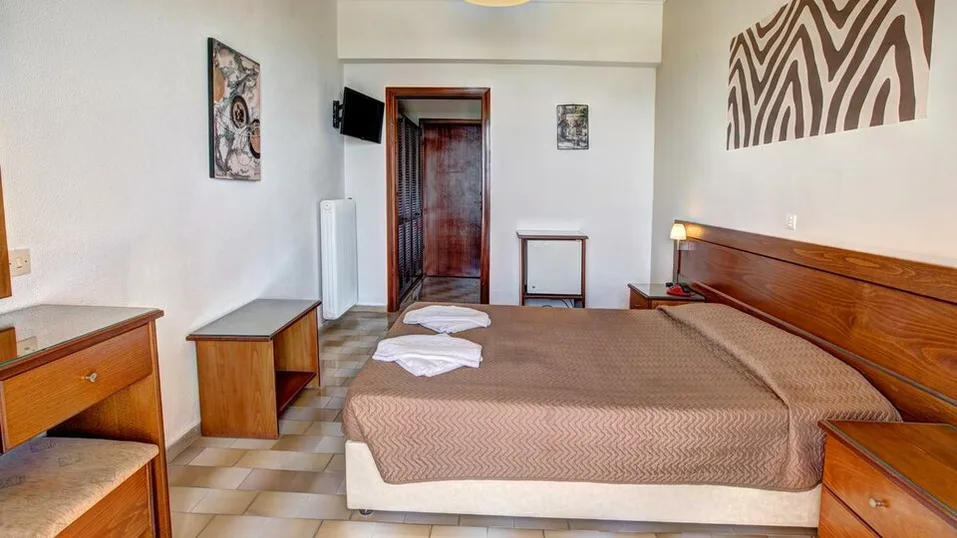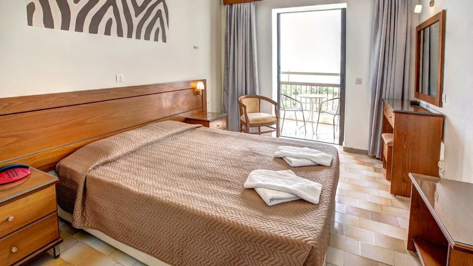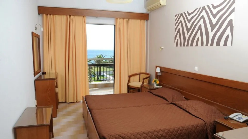 Smeštaj je organizovan u udobnim sobama sa balkonom ili terasom i pogledom na more, bočnim pogledom ili pogledom na bazen. Hotel raspolaže sa oko 78 soba, a u ponudi su dvokrevetne, trokrevetne i porodične sobe za do četiri osobe. Standardno su opremljene klima-uređajem, televizorom sa satelitskim programima, mini frižiderom, telefonom, fenom i bežičnim internetom u zoni pokrivenosti.