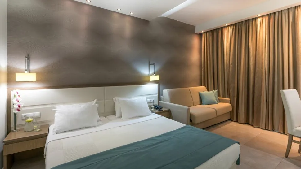 Hotel je kategorisan kao 4 zvezdice i nudi udobne, moderno uređene smeštajne jedinice različitih tipova. Na raspolaganju su standardne i superior sobe, kao i prostraniji apartmani sa pogledom na kopno ili more, pogodni za parove, ali i za porodice. Većina jedinica je projektovana tako da pruži više komfora, uz mogućnost dodatnog ležaja, a enterijer je u savremenom stilu, sa pažljivo biranim detaljima.