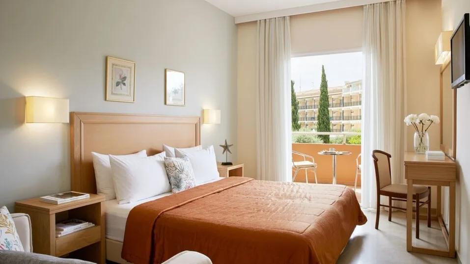 Ovaj hotel kategorije 4 zvezdice nudi smeštaj u komfornim, savremeno uređenim sobama i apartmanima, prilagođenim parovima i porodicama. U ponudi su standardne dvokrevetne i dvokrevetne/trokrevetne sobe sa pogledom na vrt, more ili bazen, kao i superior sobe sa dodatnim komforom. Za goste koji žele više prostora tu su junior apartmani i izvršni apartmani, idealni za opušten boravak i duže odmore.