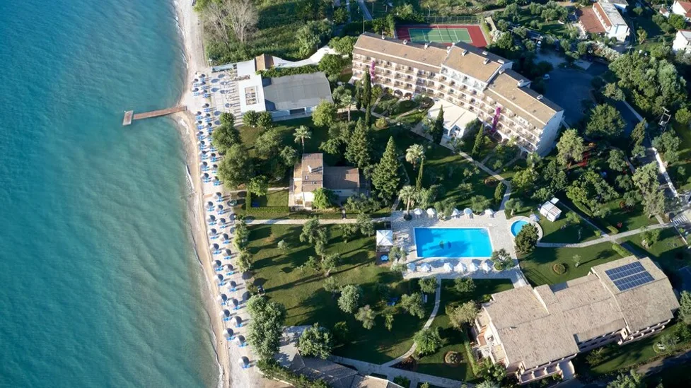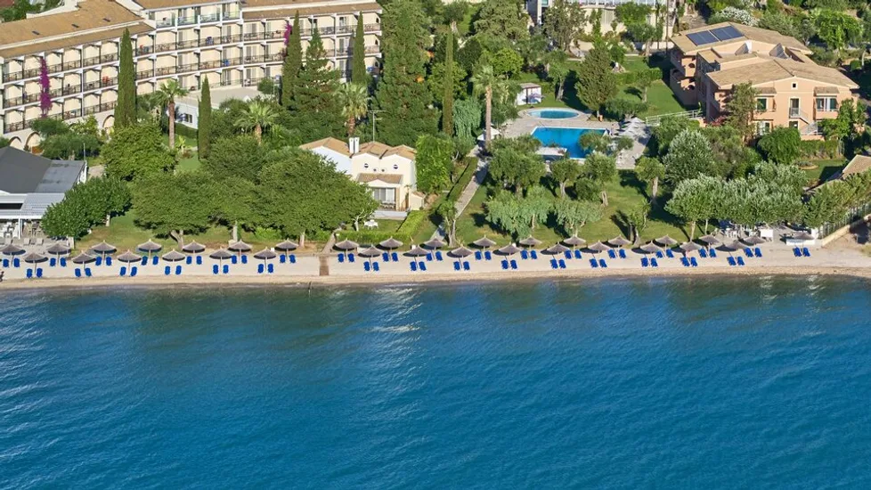 Hotel Delfinia Corfu se nalazi u južnom delu ostrva Krf, na ulazu u letovalište Moraitika, u zelenom vrtu koji se prirodno spušta ka moru. Zahvaljujući položaju uz obalu Jonskog mora, gosti su na svega 300 m od plaže Moraitika, dok su kafići, prodavnice i šetalište mesta lako dostupni. Do grada Krfa i glavnih sadržaja ostrva stiže se za oko 20 km, a međunarodni aerodrom Ioanis Kapodistrias udaljen je približno 18,4 km, što hotel čini praktičnim izborom i za kraći odmor.