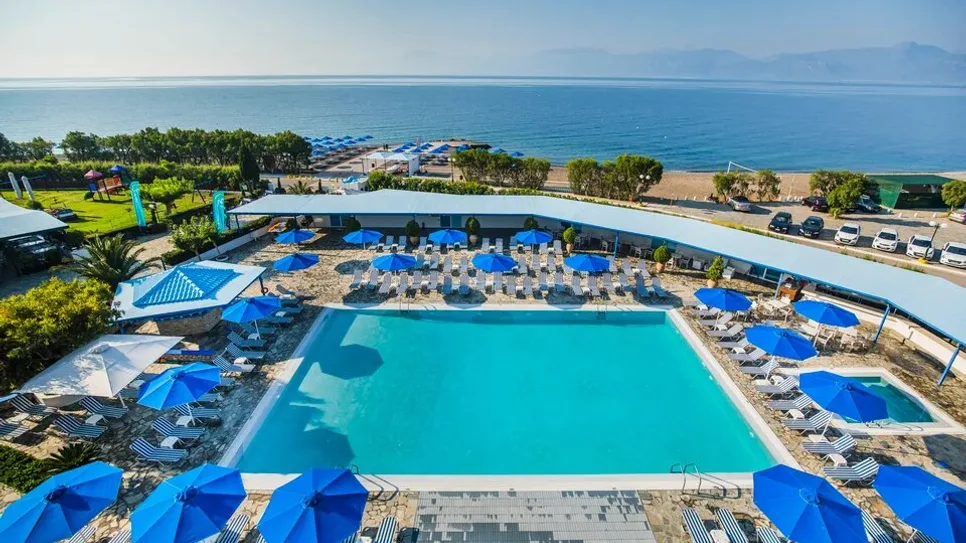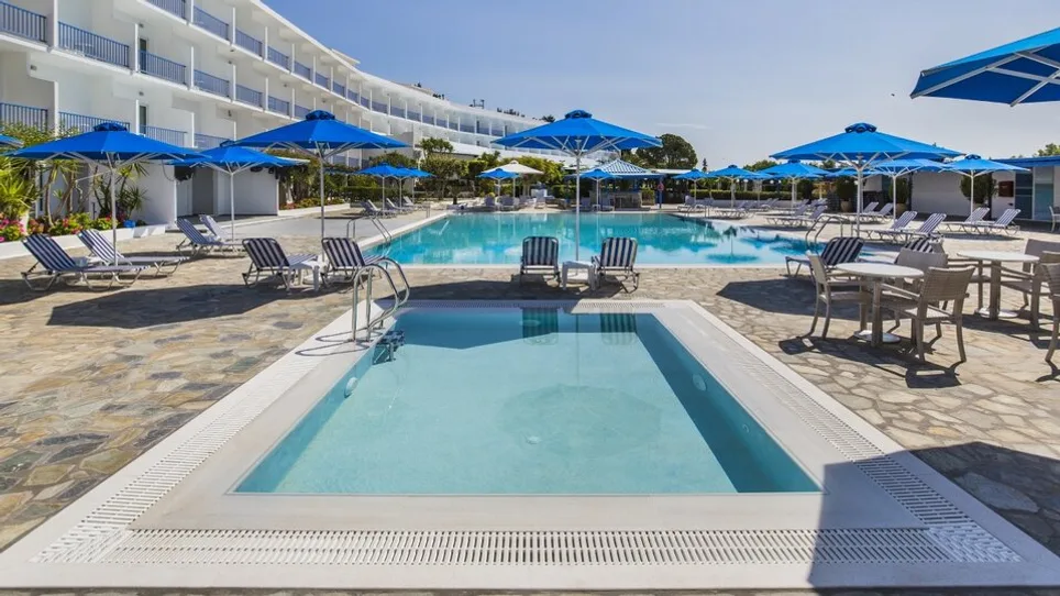 Hotel nudi bogat izbor sadržaja: spoljašnji bazen i dečji bazen, organizovanu plažu sa ležaljkama i suncobranima (uz peškire za plažu), kao i bar pored bazena i dodatne barove. Gastronomiju upotpunjuju glavni restoran na bazi švedskog stola i a la kart restoran, uz opcije prilagođene deci. Za aktivan odmor tu su košarka, odbojka na plaži i animacije tokom dana, dok mališani imaju igralište i programe za najmlađe. Na raspolaganju su i konferencijska sala, lekar po pozivu, rent-a-car i bankomat.