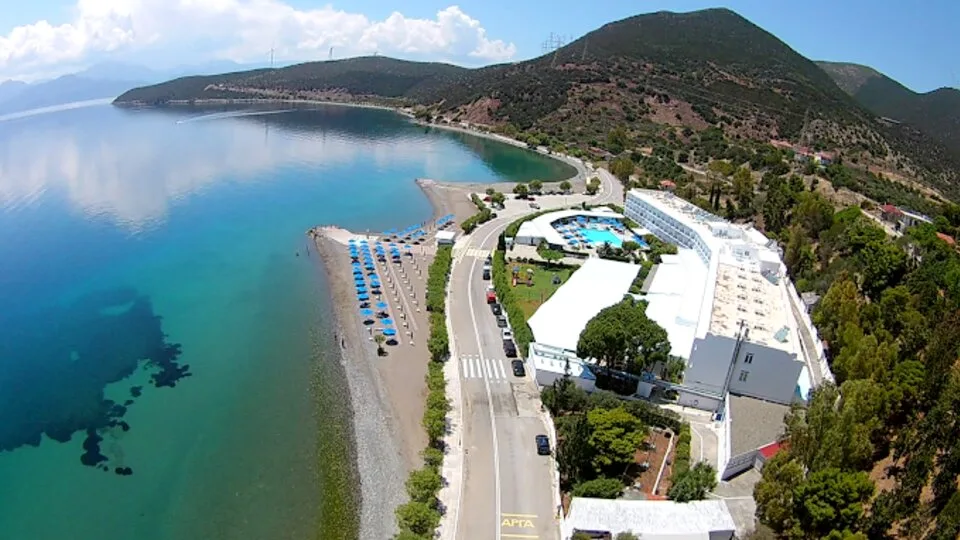Hotel Delphi Beach se nalazi u mestu Erateini, u Centralnoj Grčkoj, na obali Korintskog zaliva, u mirnom prirodnom okruženju između planina i mora. Pozicioniran je praktično na samoj obali, pa je neposredno uz plažu, idealno za goste koji žele da dan započnu kupanjem i pogledom na pučinu. Do centra Erateinija ima približno oko 3 km, dok je Atina udaljena oko 220 km. Za dolazak avionom, najčešće se koristi aerodrom u Atini (oko 159 km), a u regionu je i aerodrom Araxos.