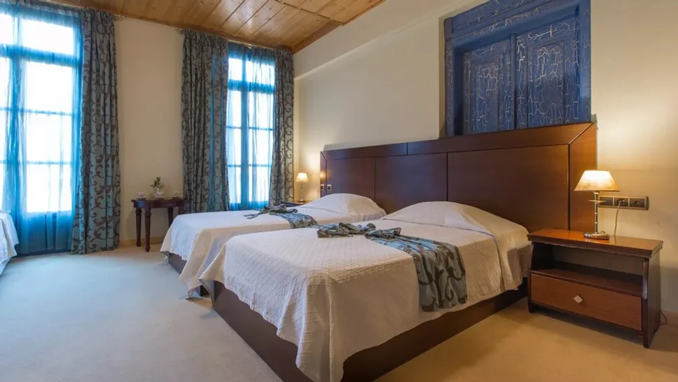 Smeštaj je koncipiran u boutique stilu i obuhvata 11 jedinstveno uređenih soba, svaka sa posebnom atmosferom i detaljima inspirisanim grčkom tradicijom. U ponudi su jednokrevetne i dvokrevetne sobe, kao i komfornije varijante sa balkonom ili dodatnim ležajem (sofa), pogodne i za manje porodice. Kapacitet smeštajnih jedinica je od 1 do 3 osobe po sobi, uz pažljivo osmišljen raspored za udoban boravak.