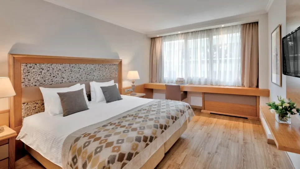 U ponudi je 471 soba, uključujući elegantne sobe različitih kategorija, kao i komforne apartmane za goste koji žele više prostora. Smeštajne jedinice su osmišljene u savremenom, profinjenom stilu, sa pažljivo biranim detaljima i udobnim ambijentom za odmor nakon obilaska grada ili poslovnih obaveza. Pojedine sobe nude i atraktivne poglede na grad i najpoznatije atinske vizure.