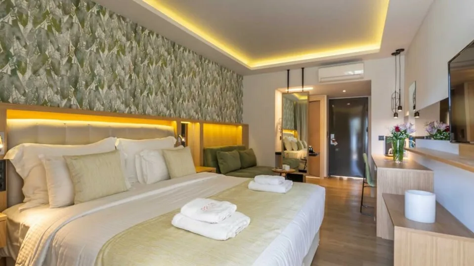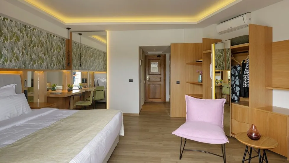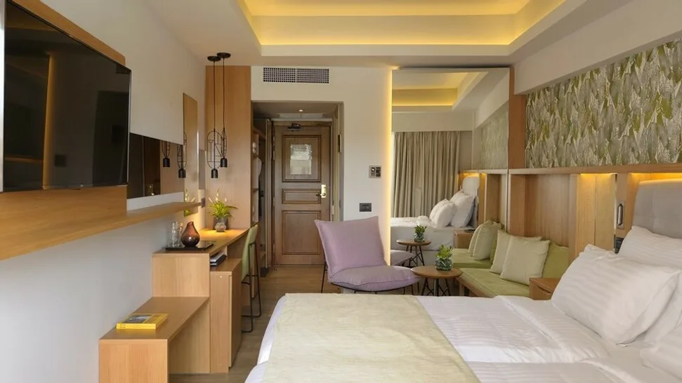Smeštaj obuhvata oko 350 soba, raspoređenih u glavnoj zgradi i u bungalovima, sa pogledom na more ili planine. U ponudi su komforne deluxe i premium sobe, uključujući porodične varijante sa većim prostorom, kao i apartmani i bungalovi za goste koji žele više privatnosti. Većina jedinica ima balkon ili terasu, a odabrani bungalovi nude i privatni bazen, što boravak čini posebno ekskluzivnim.
