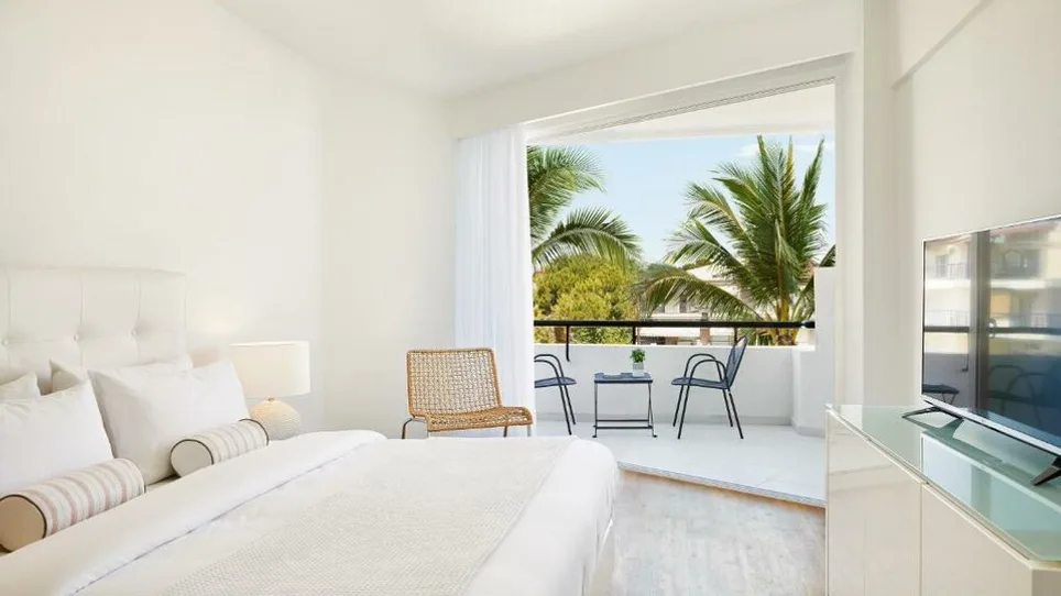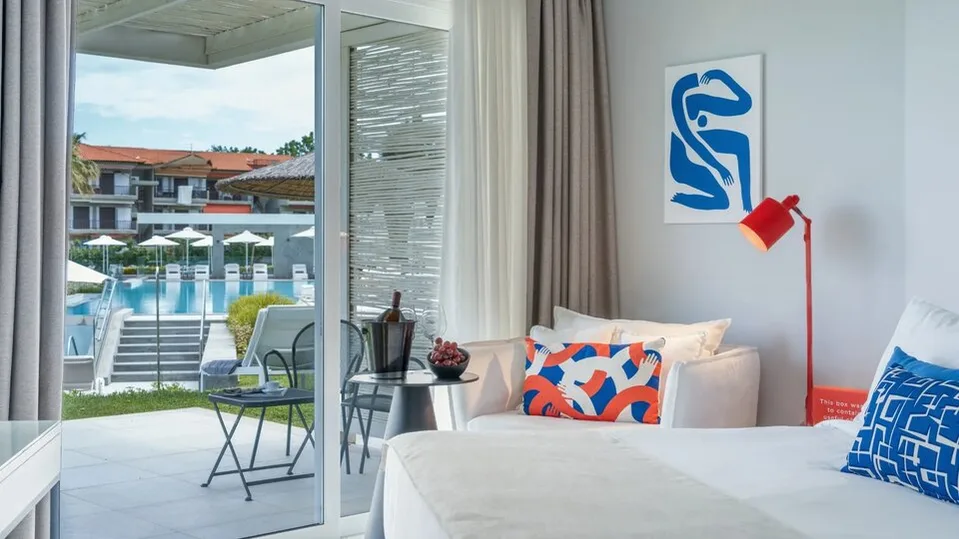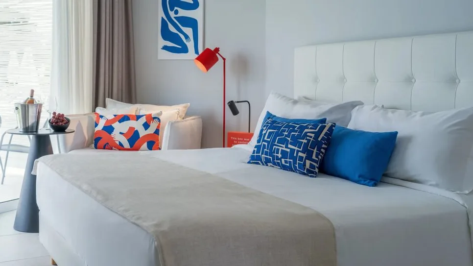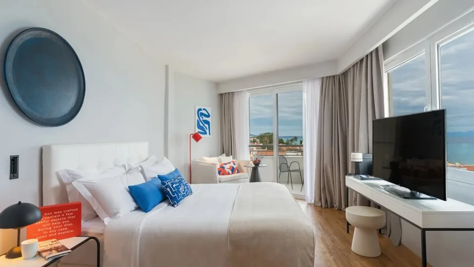Smeštaj je osmišljen za moderan odmor uz komfor i estetiku, sa sobama i apartmanima u svetlim, mediteranskim tonovima. Na raspolaganju su različite kategorije, od elegantnih soba sa pogledom na kopno ili more, do prostranijih jedinica poput apartmana i kabanа uz bazen. Većina opcija je namenjena za dve osobe, dok pojedine jedinice mogu ugostiti i do 3 odrasle osobe, uz pažljivo uklopljene detalje i terase/balkone za uživanje u večernjem povetarcu.