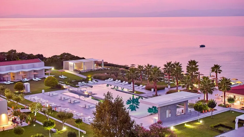 Domes Noruz Kassandra je luksuzni hotel sa 5 zvezdica koji se nalazi u mestu Hanioti, na Halkidikiju, u Grčkoj, u živopisnom okruženju poznatom po borovim šumama i tirkiznom moru. Hotel je pozicioniran tik uz obalu, pa je neposredno uz plažu, dok se do šetališta, kafića i prodavnica u Haniotiju stiže laganom šetnjom. Najbliži veći aerodrom je u Solunu, na oko 1 sat vožnje od aerodroma, što ga čini odličnim izborom i za kraće, ali i za duže odmore.